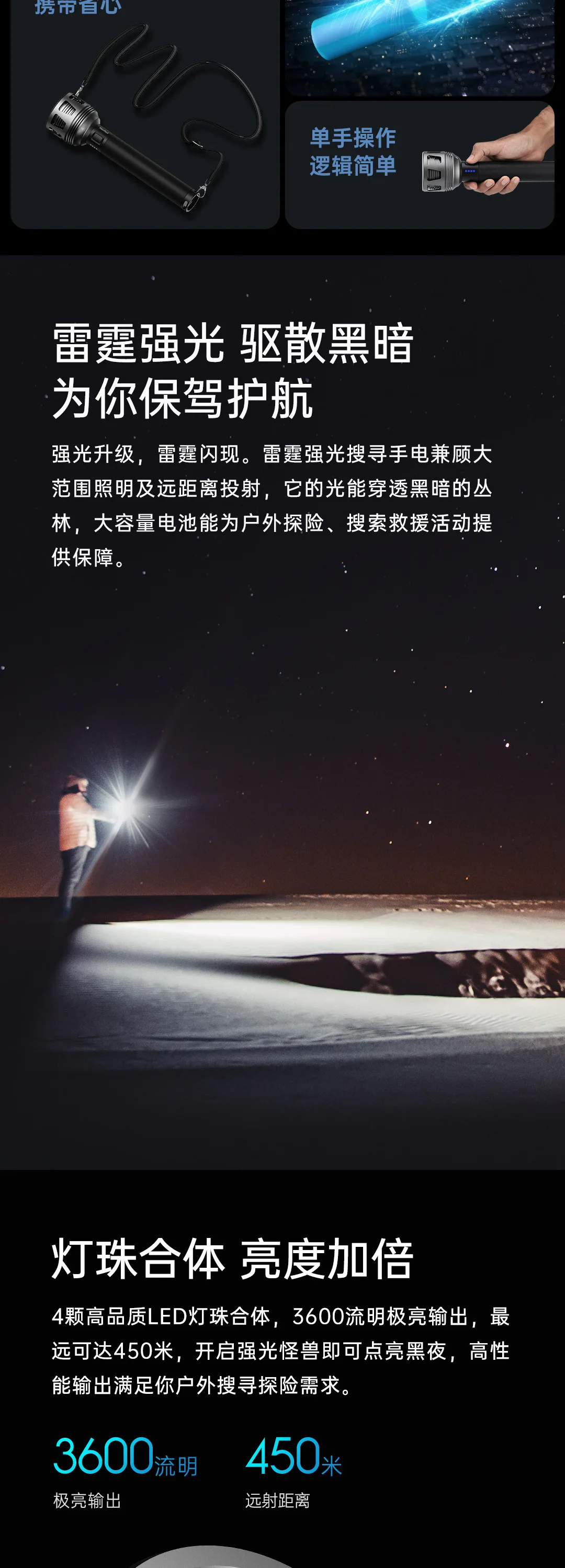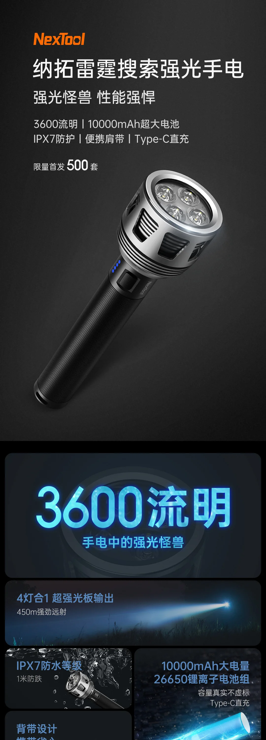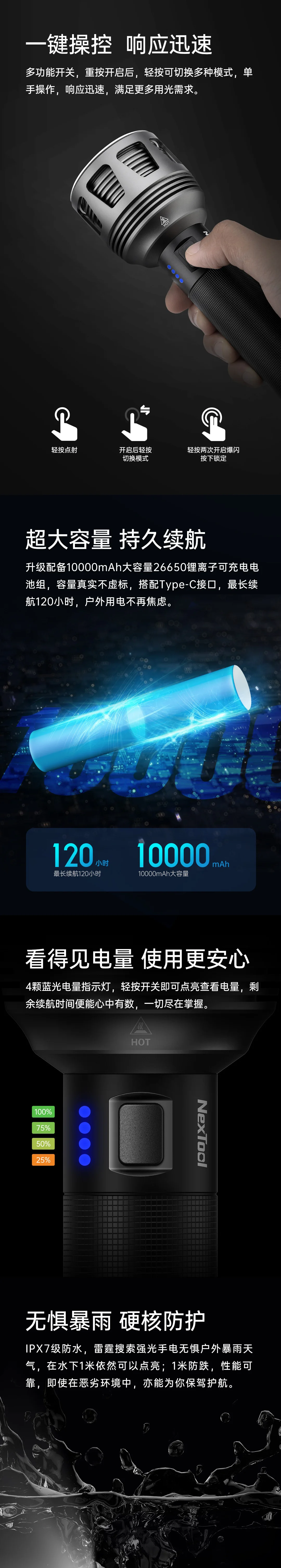Nextool Thunder Search glare flashlight rechargeable flashlight multifunctional outdoor home telebeam light