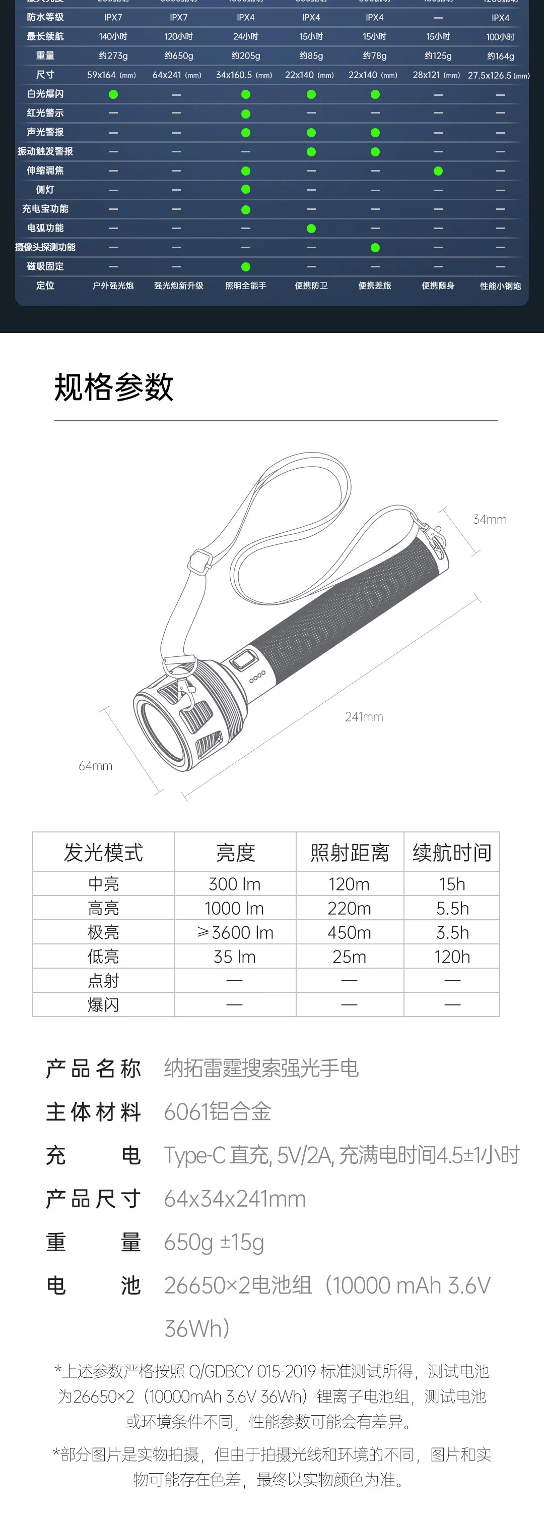 Nextool Thunder Search glare flashlight rechargeable flashlight multifunctional outdo …