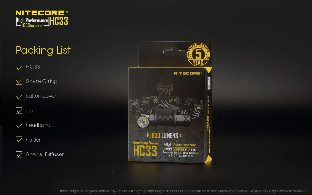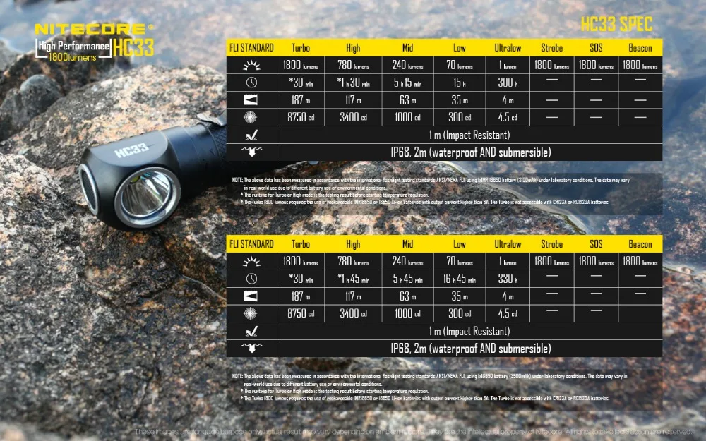 NITECORE HC33 Headlamp Bright LED 1800 lumen Beam Distance 187 meter Headlight 8 Work …