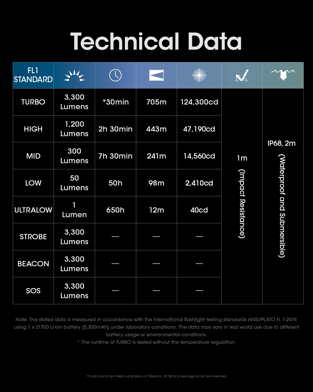 •Intelligent Li-ion battery charging circuit with a USB-C charging portNITECORE 21700 Li-ion battery included (NL2153HP 5,300mAh)