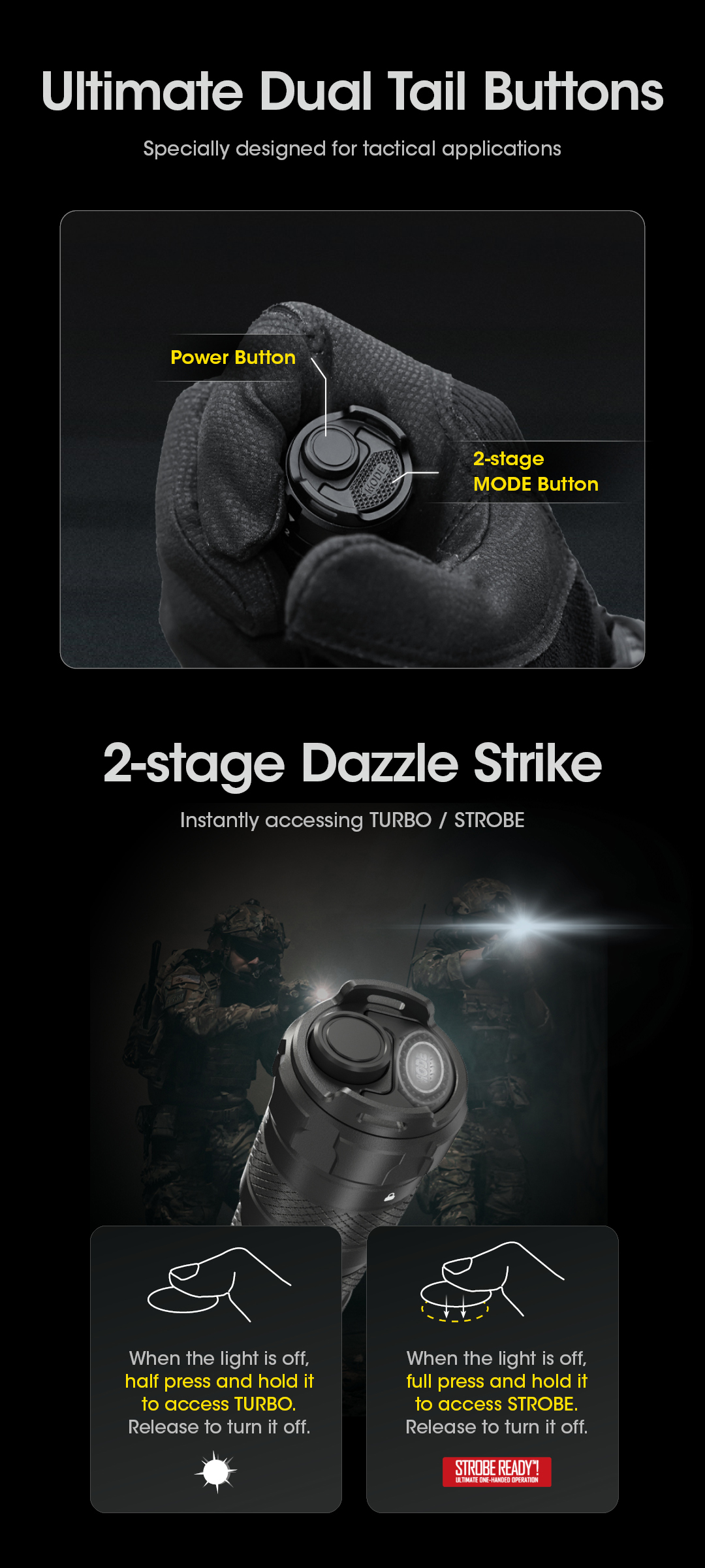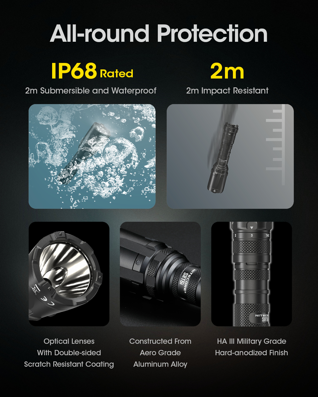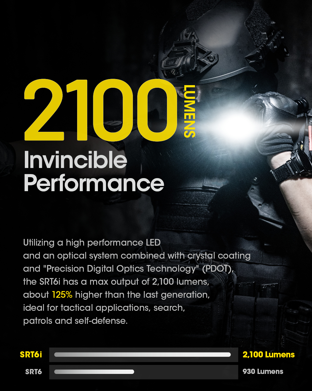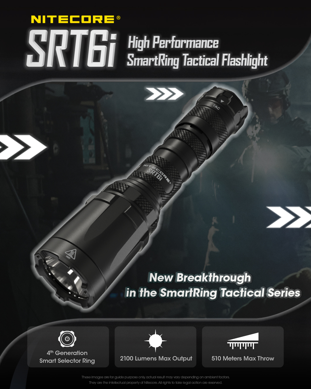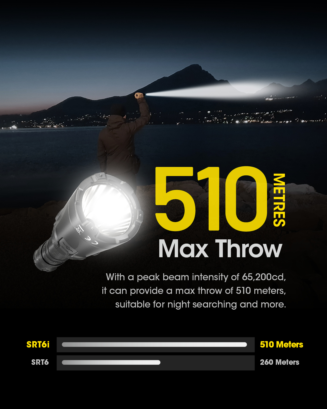 NITECORE SRT6i Flashlight 2100 Lumens USB-C Rechargeable Smart Selector Ring Rescue Search 510 Meters Torch With 5000mAh Battery