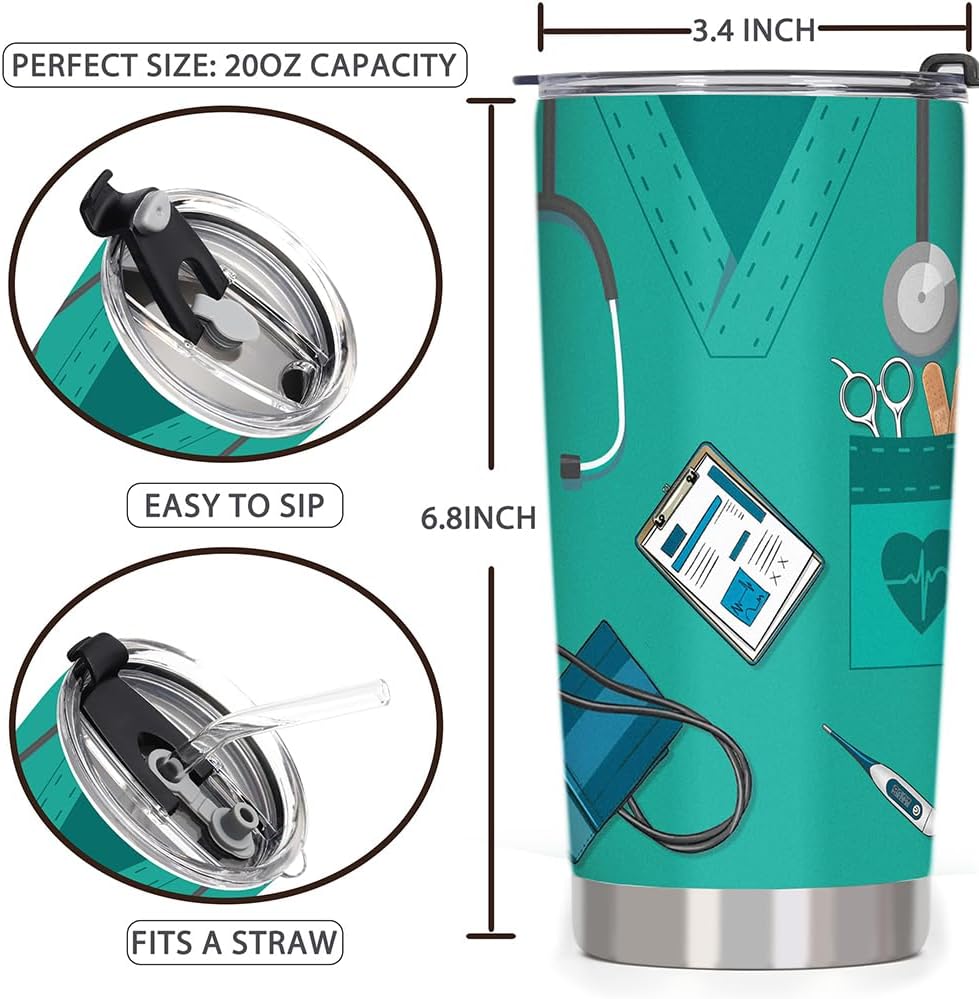 🎉EASY TO CLEAN – With a total length of 7 inches by 3.4 inches and a total capacity of 20 ounces, our nurse gifts for nursing student have a smooth stainless steel lining that makes cleaning a breeze, and a sealed lid that prevents drinks from spilling, spill-proof and easy-to-clean design convenience is more than just a feature.The stainless steel interior ensures an uncomplicated cleaning process, allowing nurses to maintain hygiene without sacrificing valuable time.