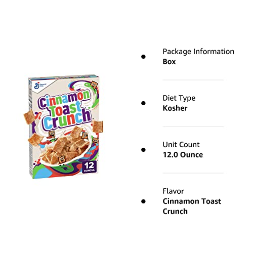 One 12 oz box of General Mills Cinnamon Toast Crunch Breakfast Cereal