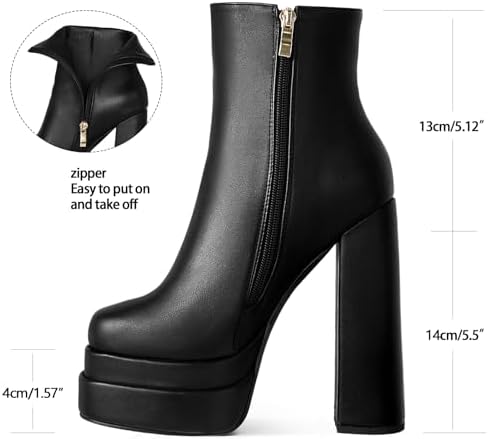 Ouepiano Embroidered Ankle Boots for Women Platform Booties Chunky High Heel Square T …