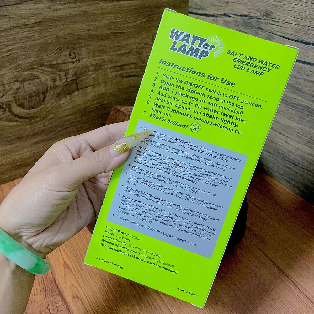 1. There are no requirements for water quality or salt purity. Any water can be used. Even if seawater or urine is added (even without salt), it can still be used. However, the light will be brighter after adding salt.