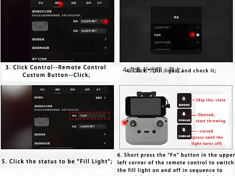 Note: The "red light is always on" during charging, and the "green light is always on" when fully charged. When the parabola is turned on and used normally, the red light will flash several times, and then the "red light is always on";