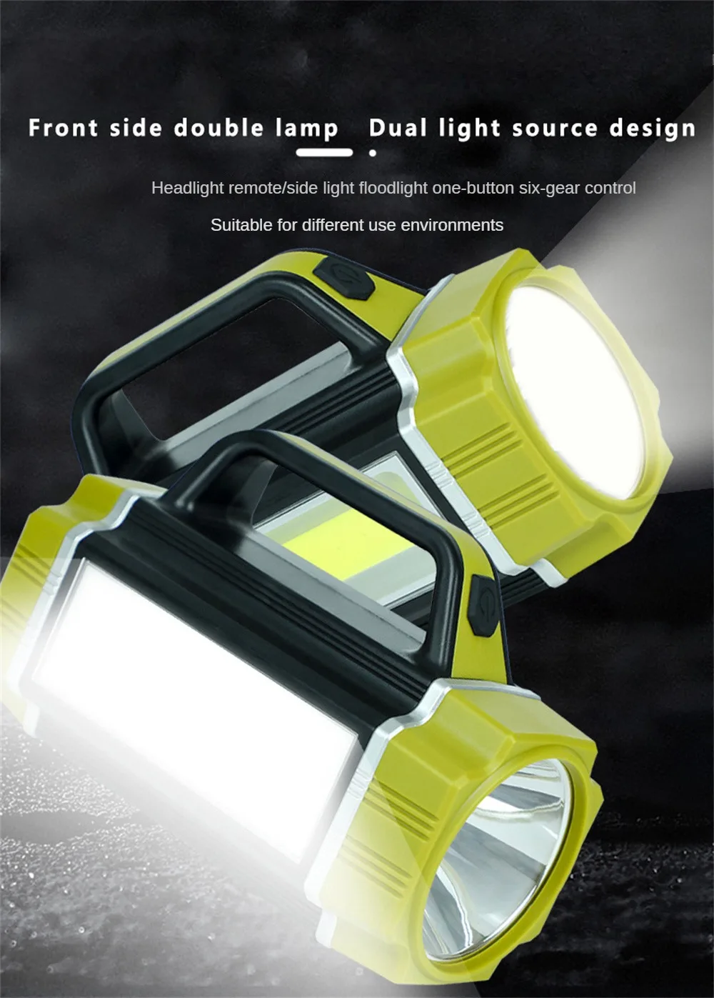 3. One key six gear mode adjustment, one key switch: front light three gear adjustment – strong light/weak light/flash, side light three gear adjustment – strong light/weak light/red light flash.