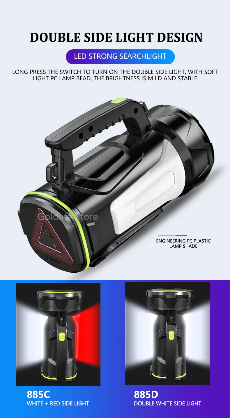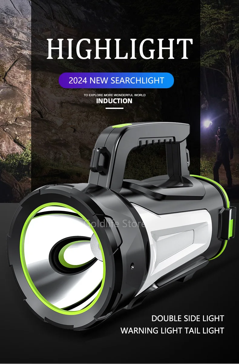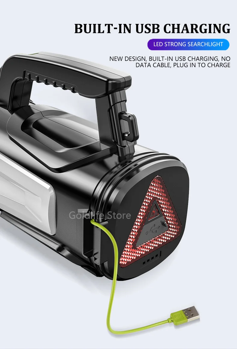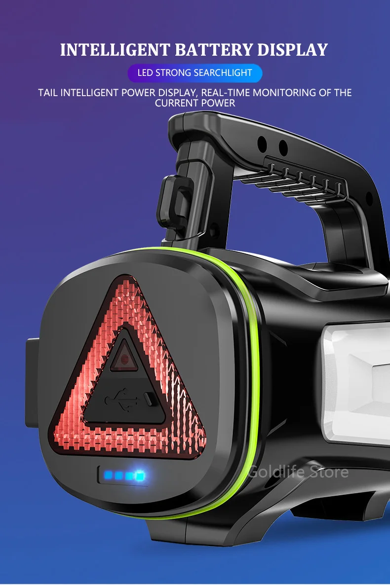 Powerful Rechargeable Searchlight LED Flashlight IPX6 Waterproof With Tail Light Brig …