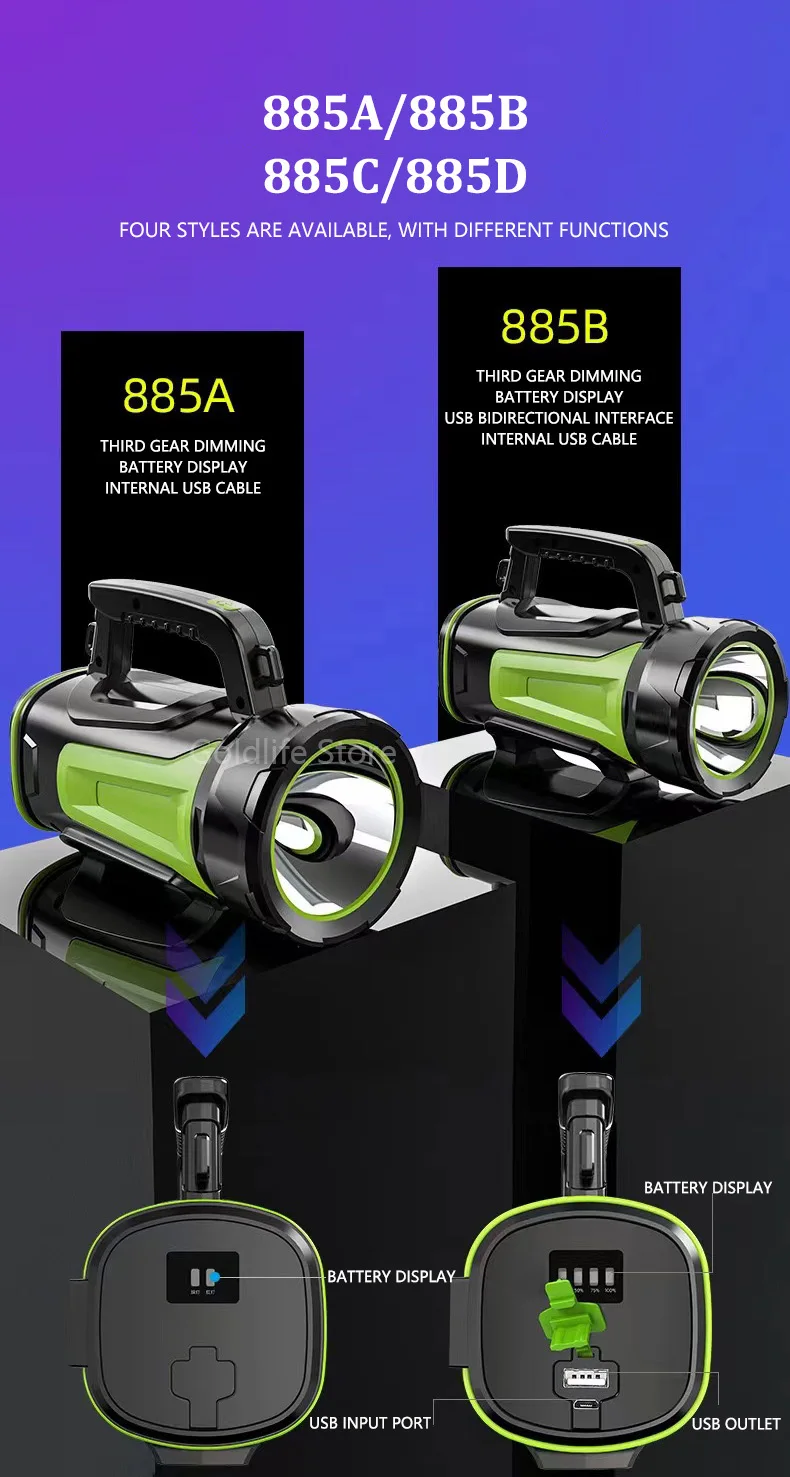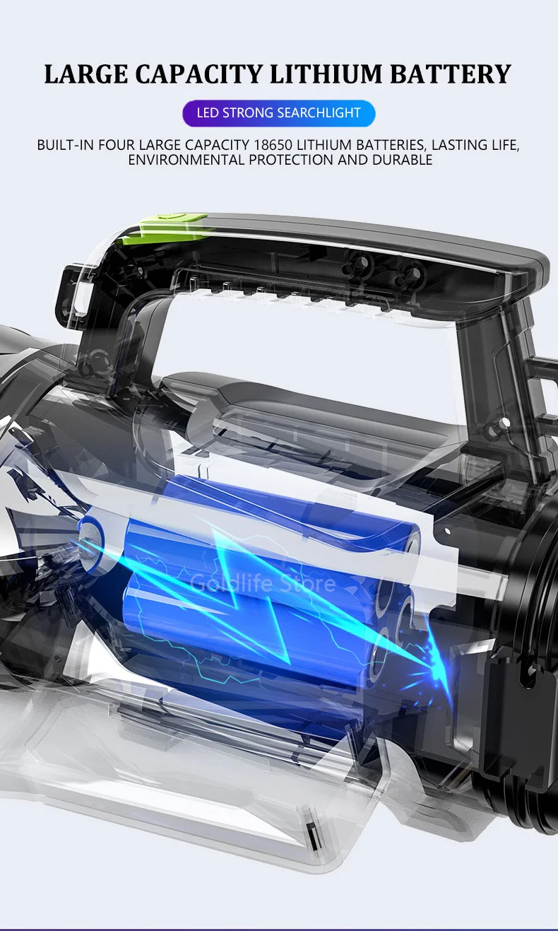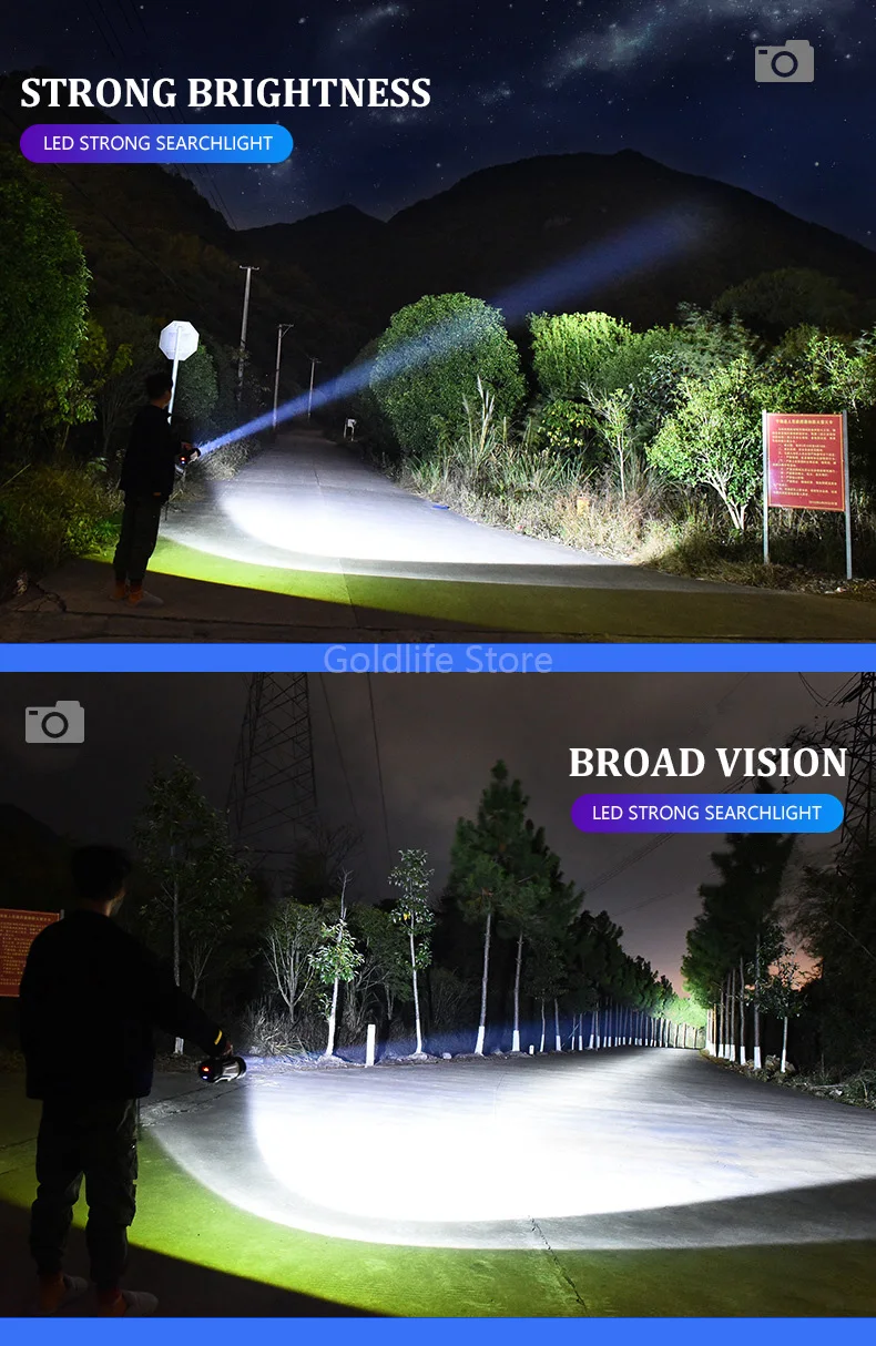 Powerful Rechargeable Searchlight LED Flashlight IPX6 Waterproof With Tail Light Brig …