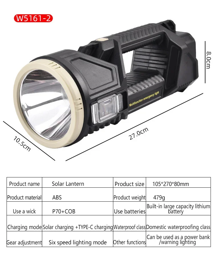 Powerful Solar LED Searchlight Outdoor Multifunction USB Rechargeable P70 Work Light …
