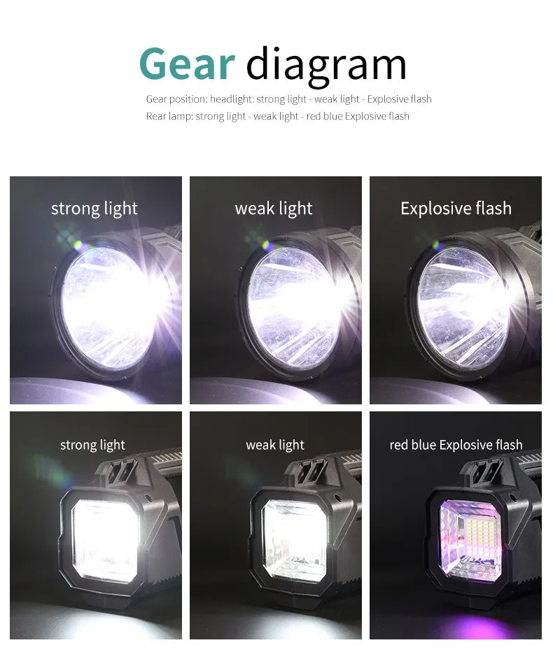 Taillight white light intensity 400Lm, headlight white light weak 120Lm