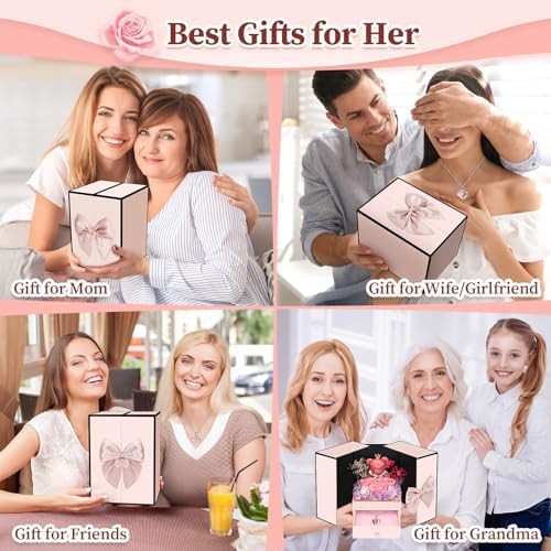 Romantic Christmas Gifts for Her: The preserved flower bear box with creative necklace is an exquisite gift for women on Christmas! Perfect gifts for women Christmas, birthday, anniversary. On such an important day, wear the sparkling necklace for your loved one, which will give her a surprise, make her happy and create much romantics. Best women gifts for wife, girlfriend, mom, I love you gifts for her. Every woman who receives this rose bear gift will have an unforgettable memory!