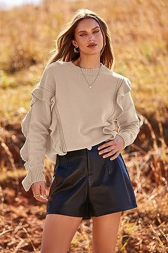 PRETTYGARDEN Women’s 2024 Knit Pullover Sweaters Long Sleeve Crewneck Ruffle Lo …