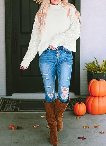 PRETTYGARDEN Womens Fall Turtleneck Sweaters Casual Long Sleeve Pullover Ribbed Knit …