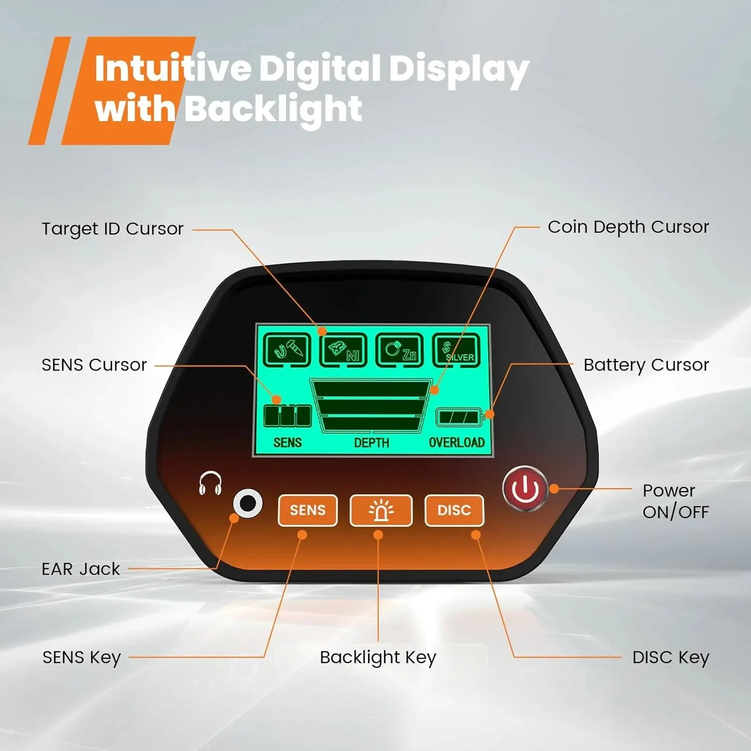 The 8” large coil delivers smooth treasure hunt experience with higher accuracy (Up to 8 inches underground).
