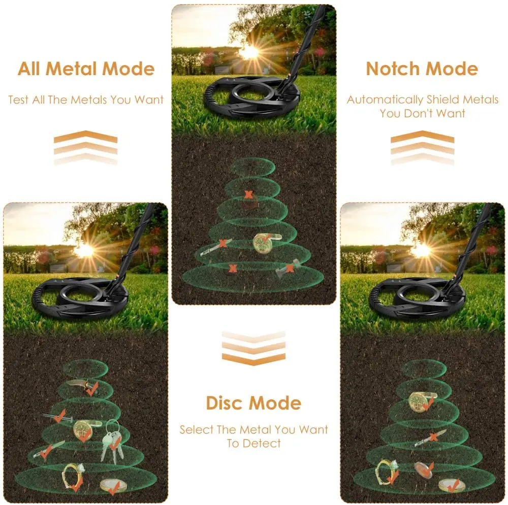 【Different Operation Modes & Intelligent Memory Function】Our metal detector has three professional modes. A. All Metal Mode: all types of metals can be detected at the same time. B. CD Mode: allows you to focus your search on the specific metal you want to detect. C. Elimination Mode: provide you with the elimination of one or several metals for detection. The mode can be switched freely, which makes metal detection more interesting.