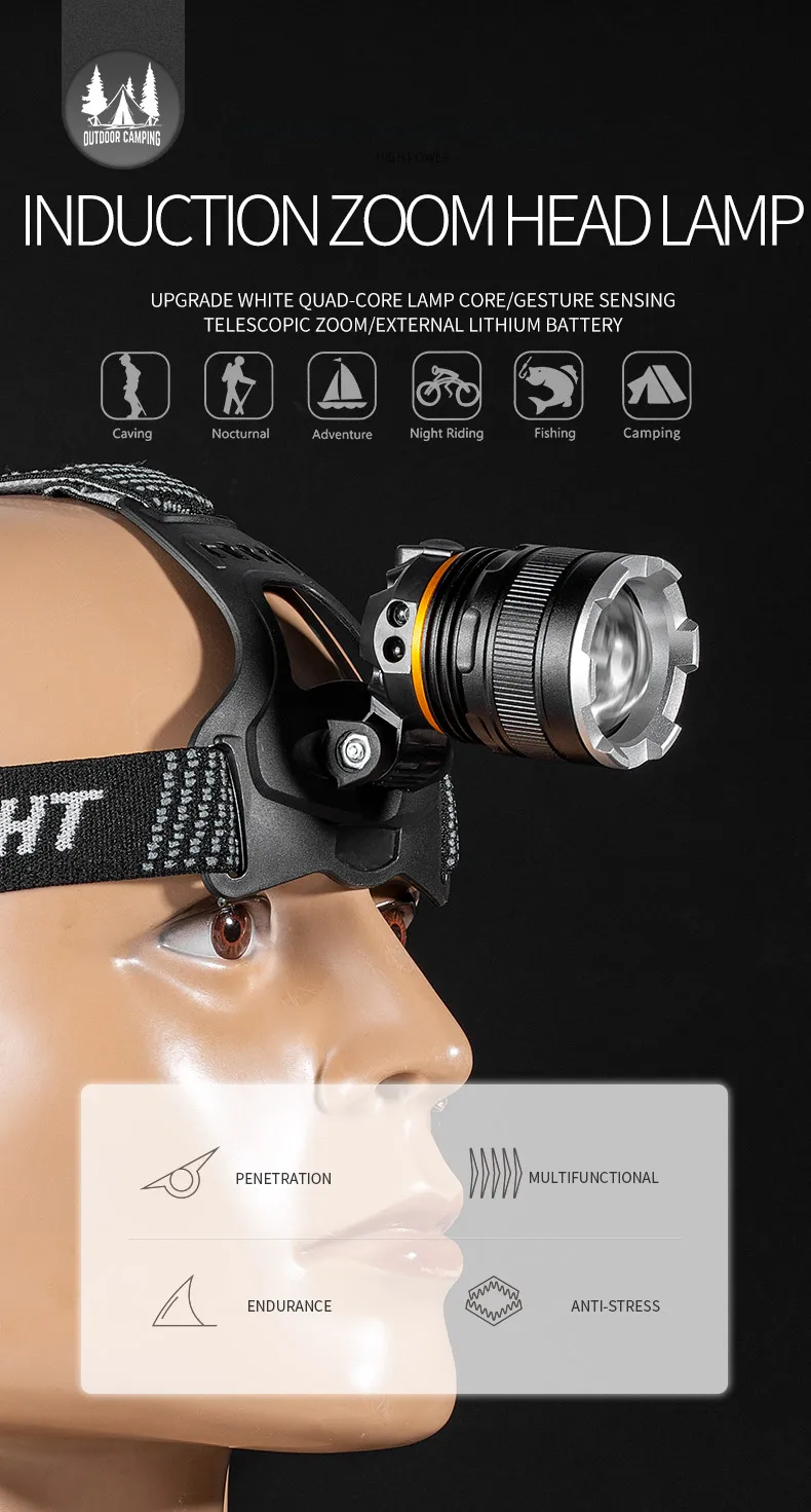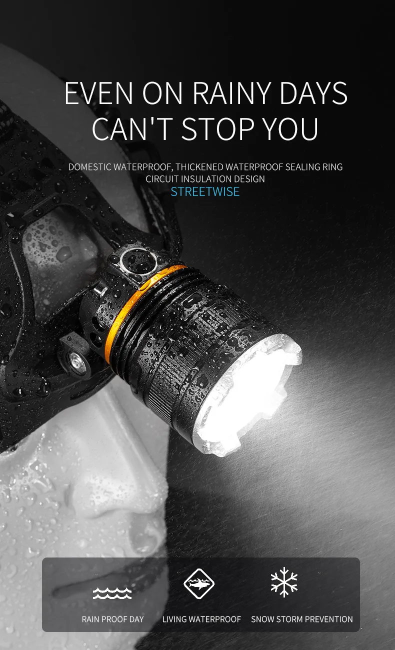 1.Using 4-core XHP50 lamp beads, the maximum lumen output can reach 2300 lumens, and the maximum lighting distance can reach 500 meters. It can easily illuminate a building and is your best choice for outdoor adventures.
