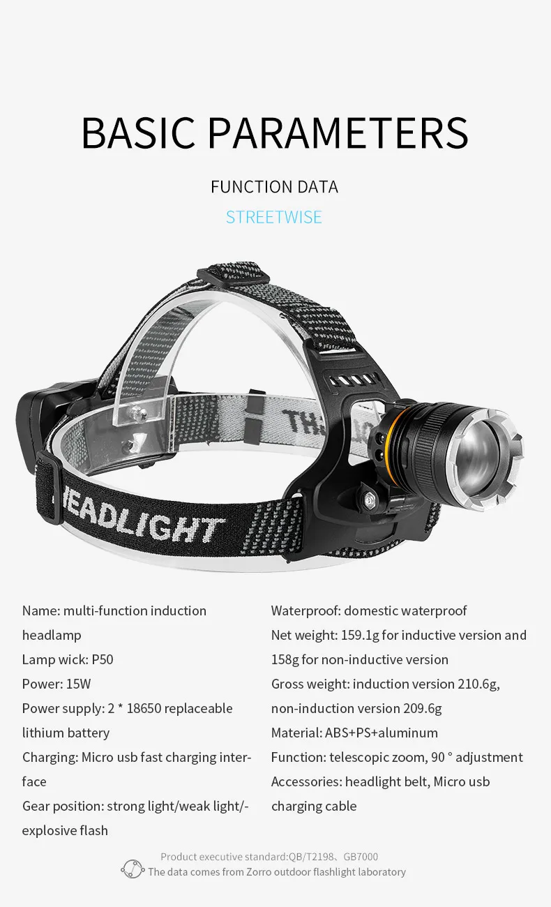 Rechargeable XHP50 LED Headlamp Waterproof Head Light Fishing Searching Camping Head …