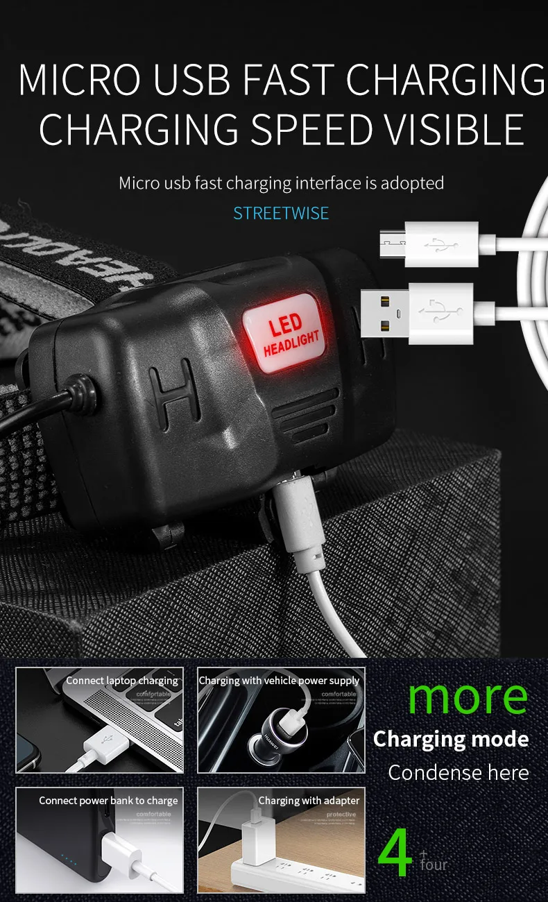 Lighting mode: high/low/SOS/sensing mode