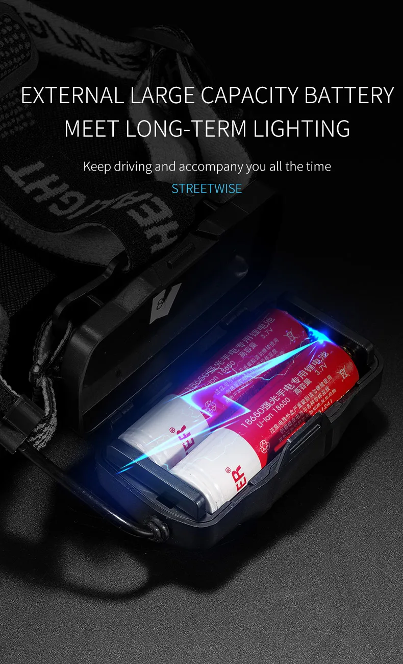 1.Using 4-core XHP50 lamp beads, the maximum lumen output can reach 2300 lumens, and the maximum lighting distance can reach 500 meters. It can easily illuminate a building and is your best choice for outdoor adventures.