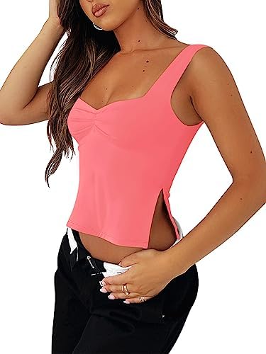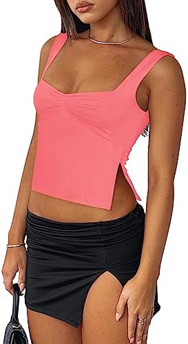 REORIA Women Sexy Ruched Sweetheart Neck Backless Sleeveless Side Split Going Out Y2K …
