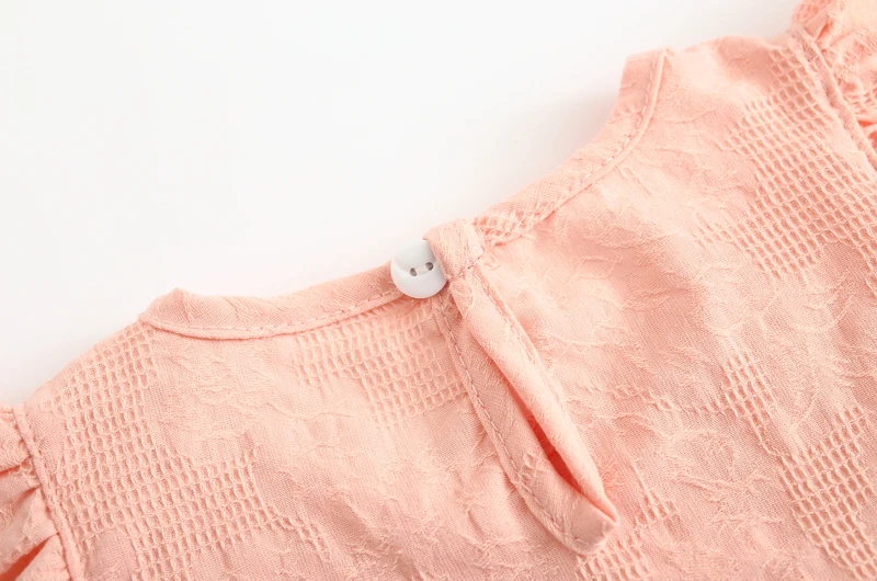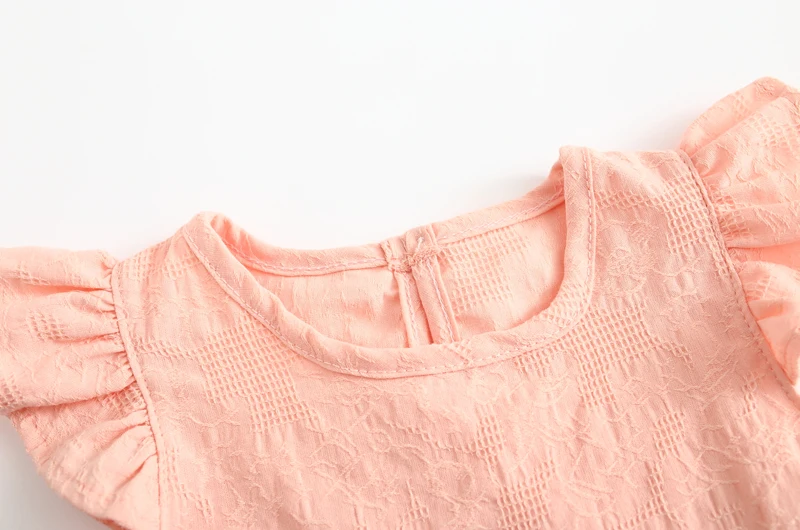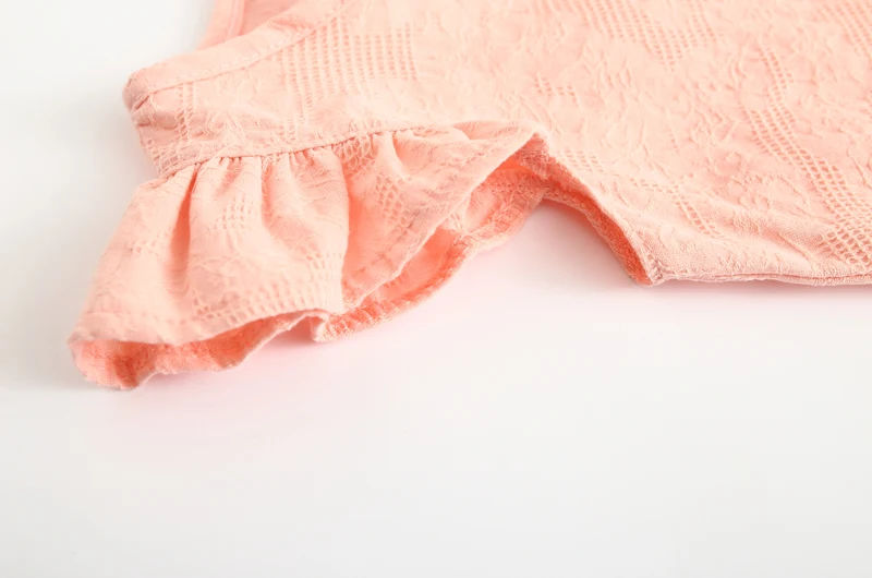 Lace Flowers Ruffle Sleeve Summer Girls Blouses Tops Slub Cotton Casual Baby Girl T-Shirts