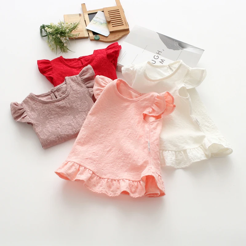 Ruffles Sleeve Lace Flowers Summer Kid Girls Blouses Tops Slub Cotton Baby Girl Shirt …