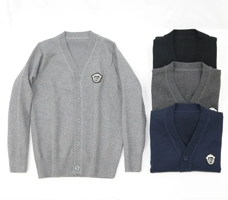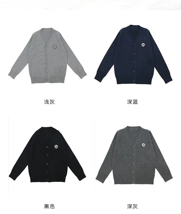 School Style Boys Girls Spring Fall Cardigan Outwear V-neck Teenager Big Kids Sweate …