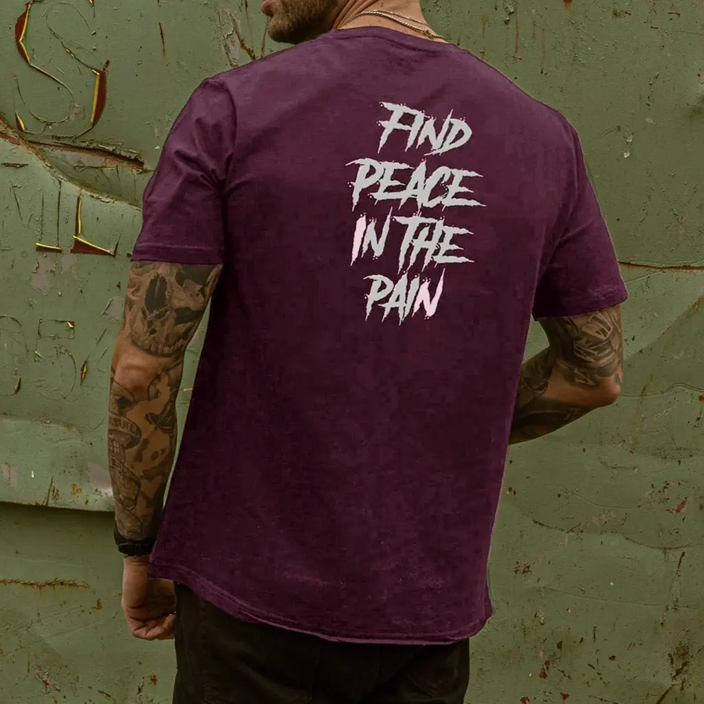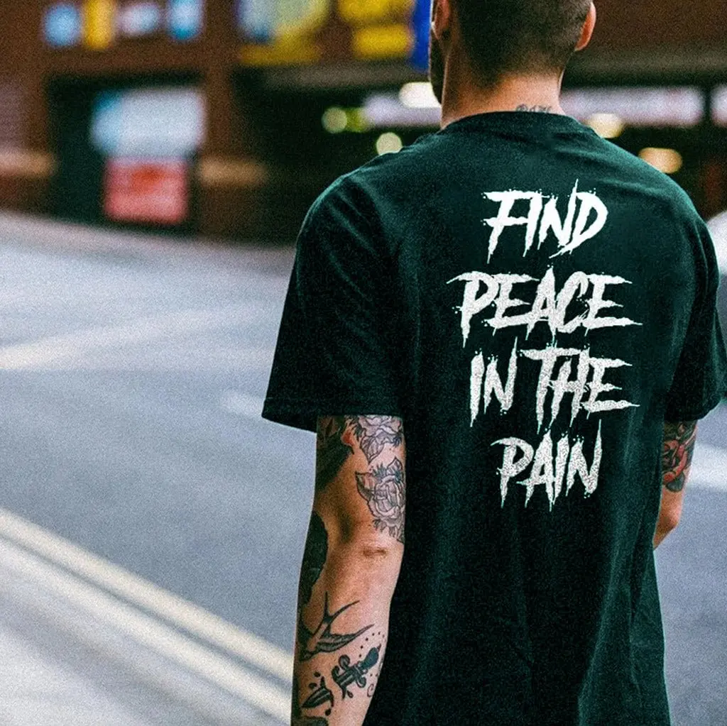 roduct Name: FIND PEACE IN THE PAIN Modern Style Black Print T-shirt