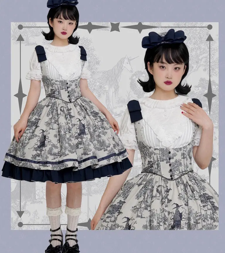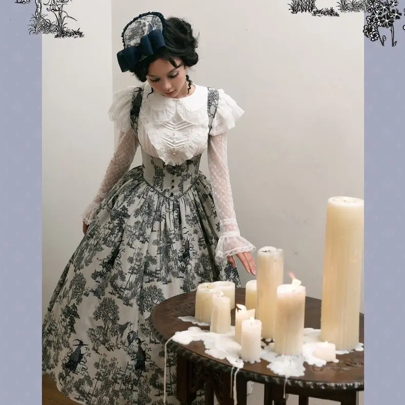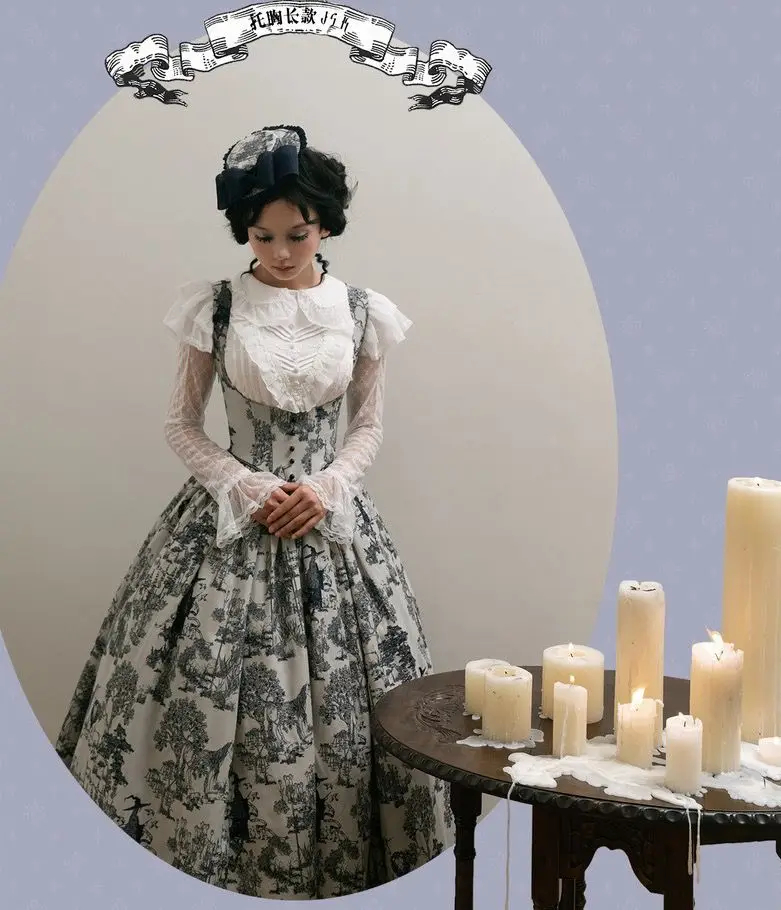 {Searching for Magic} Lolita Skirt French Long Chest Support JSK Dress Women Elegant …