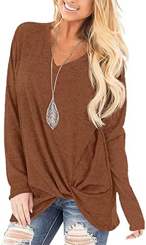 SimpleFun Womens Tops Long Sleeve Shirts V Neck Loose Fit Twist Knotted Fall Tunic Sw …