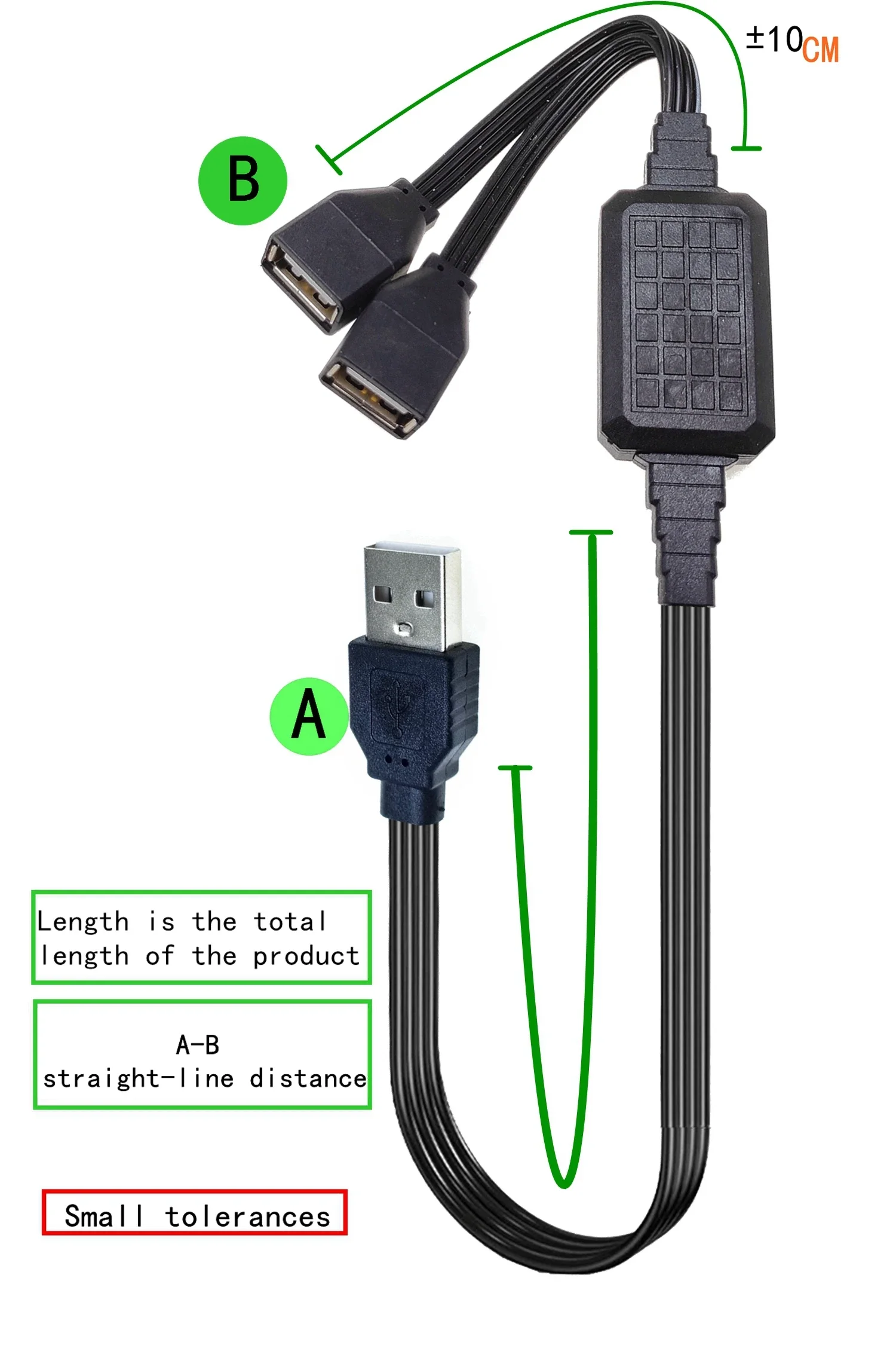 Simultaneous data transmission with chip, USB charging cable, 1 minute, 2 wires, 1 plug, 2 search bars, USB2.0 AM/2AF 20CM-110CM