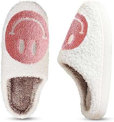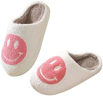 Smile Face Slippers for Women Happy face slippers Retro Soft Plush Warm Slip-on Slipp …
