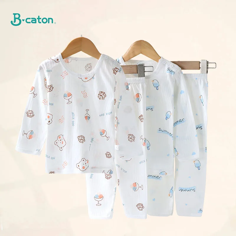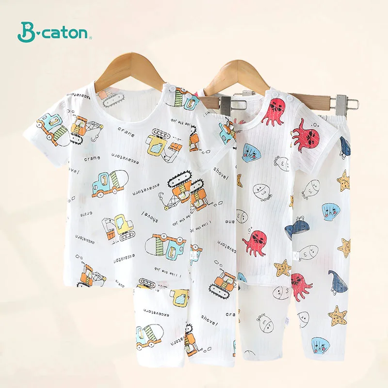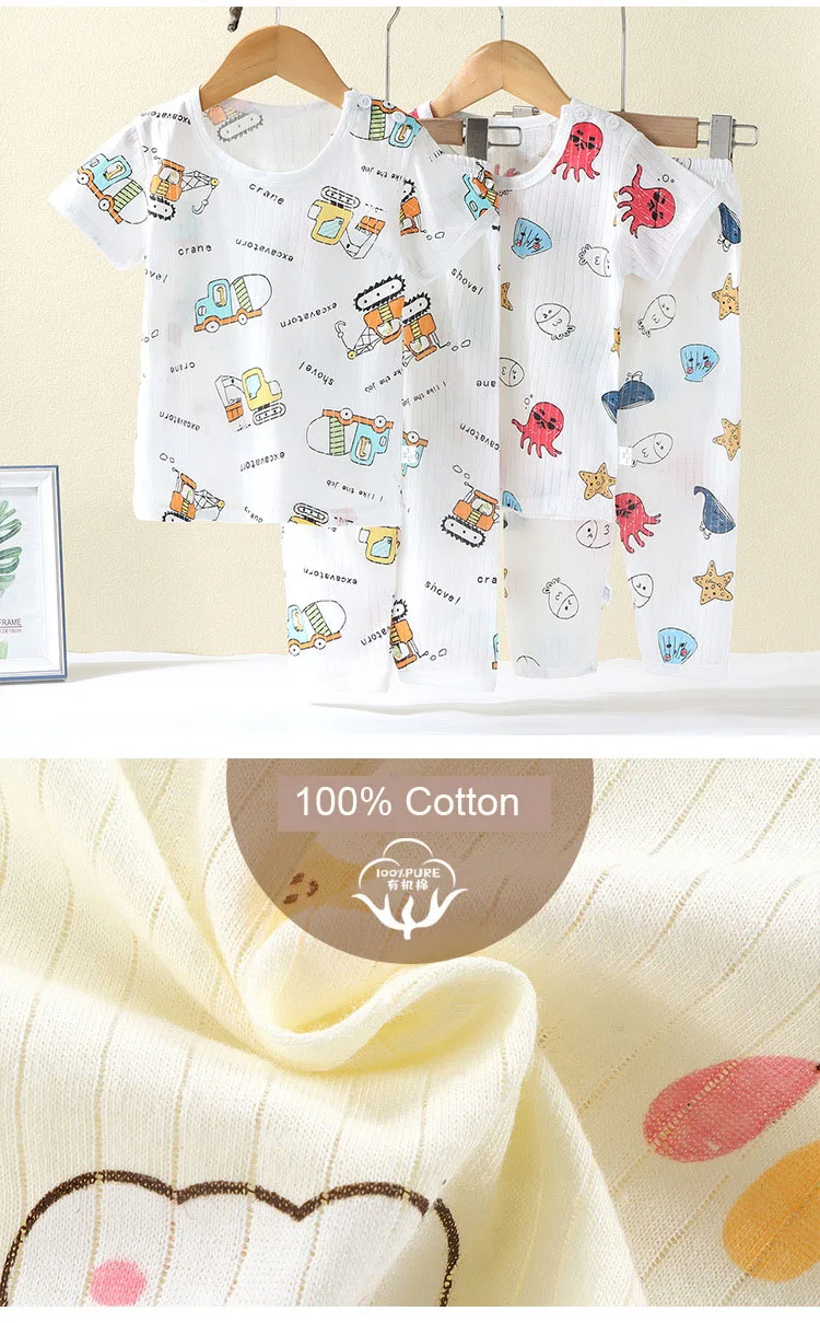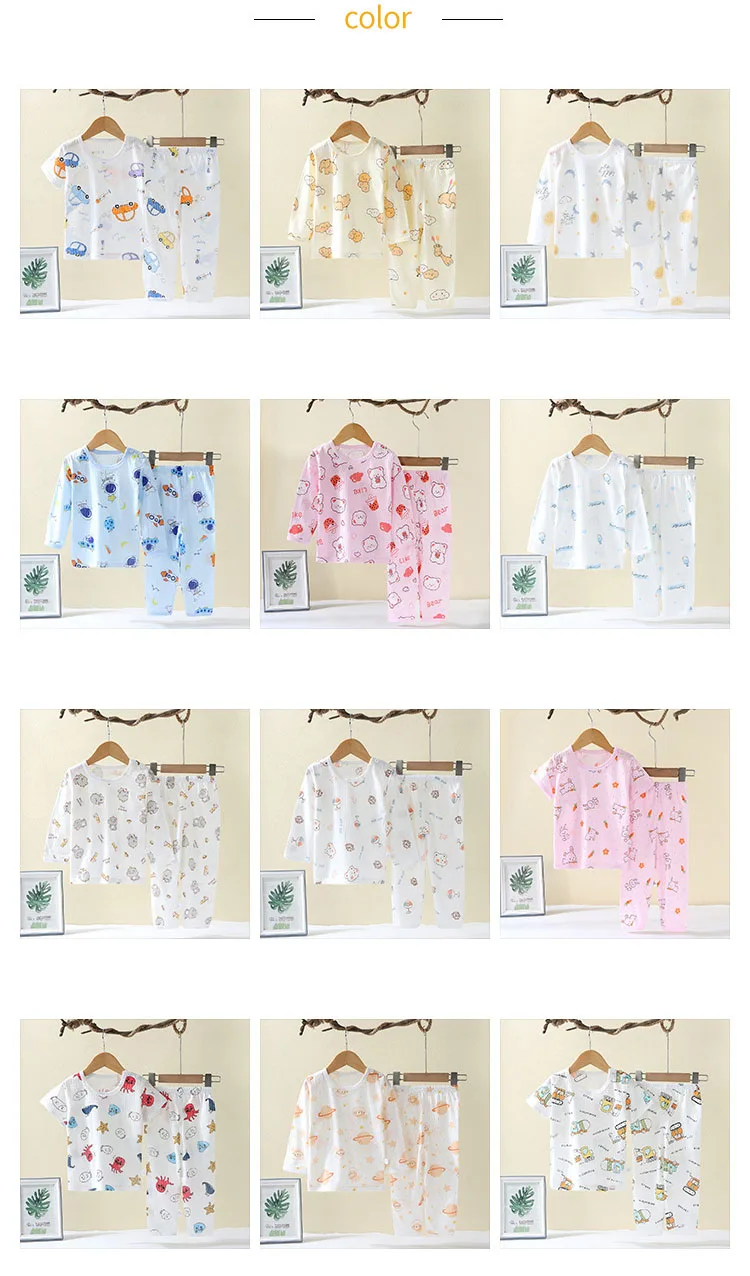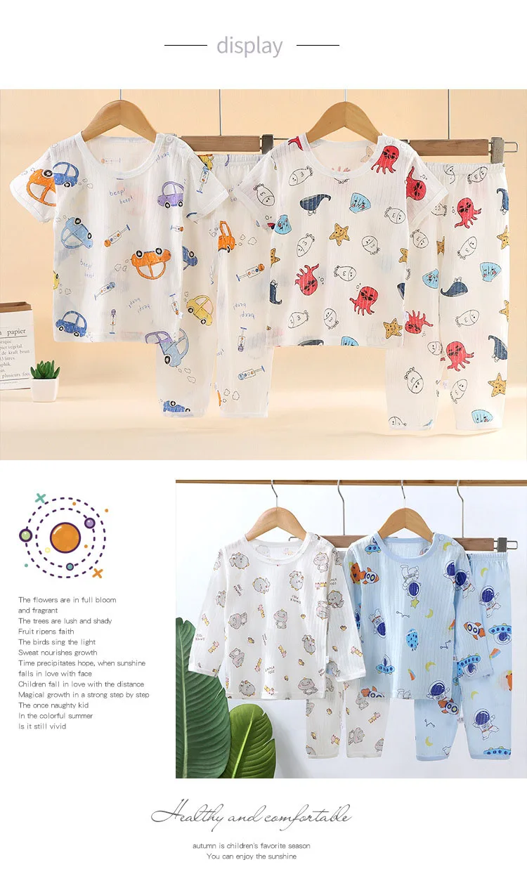 Soft Breathable Cotton Baby Children Pajamas Set Cute Cartoon Long/Short Sleeve Home …
