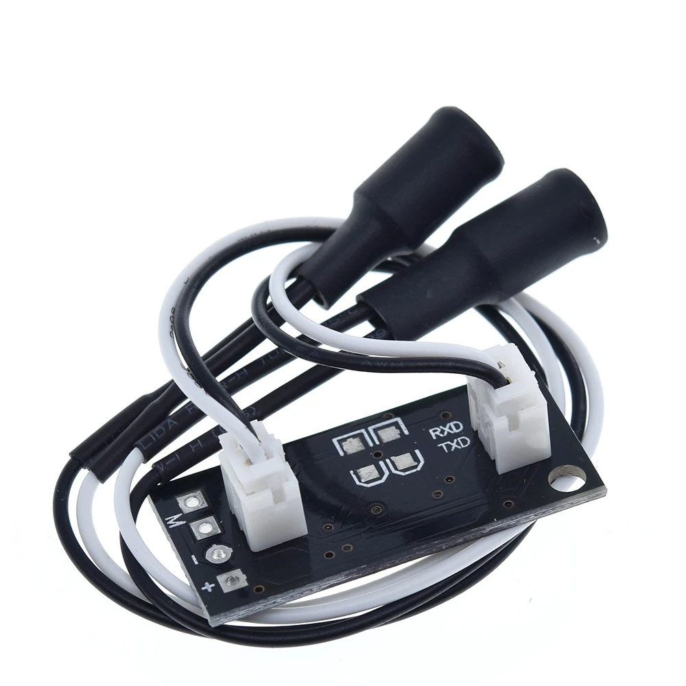 As shown in the figure, the photosensitive probe is on the same plane, and the small solar panel seat shade is used above. When the light intensity of the left probe is greater than the right side, the motor turns left until the two probes balance the value. The size of the shade is related to the angular accuracy of the light source. It’s best to cover both probes at the same time.