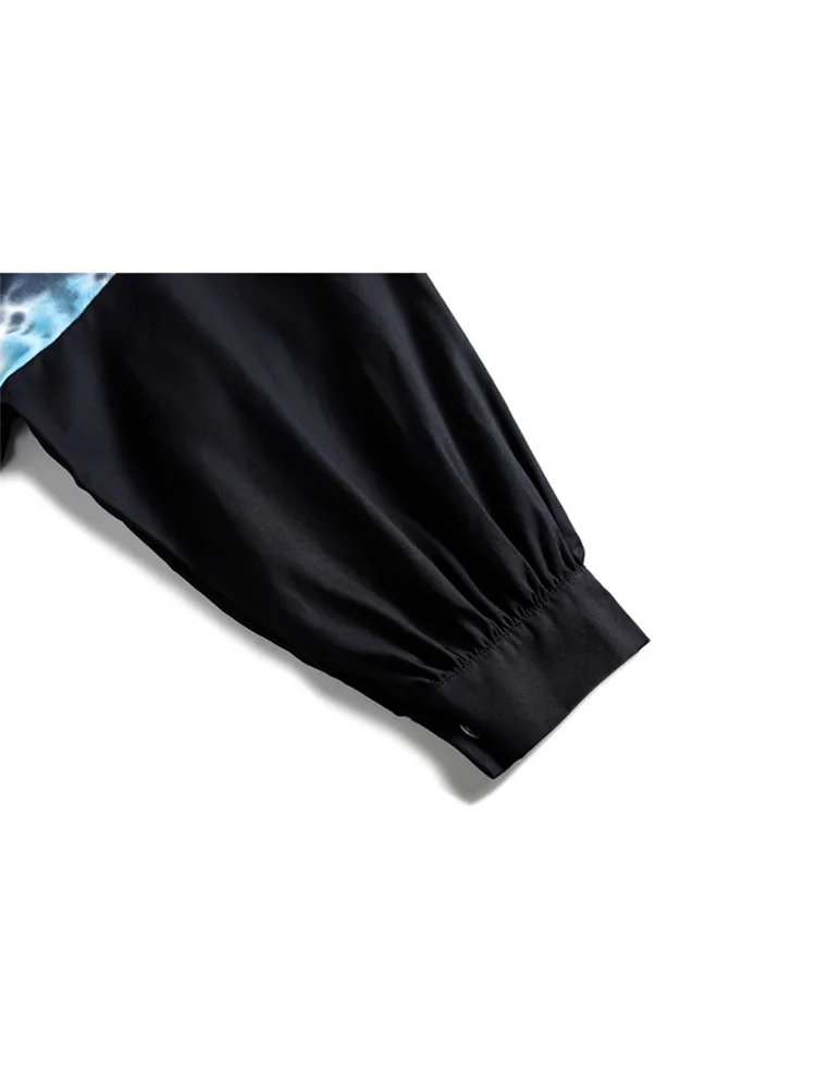 Streetwear Long Sleeve Women's Blouse Shirt Patchwork Turn Down Collar 2022 Autum …