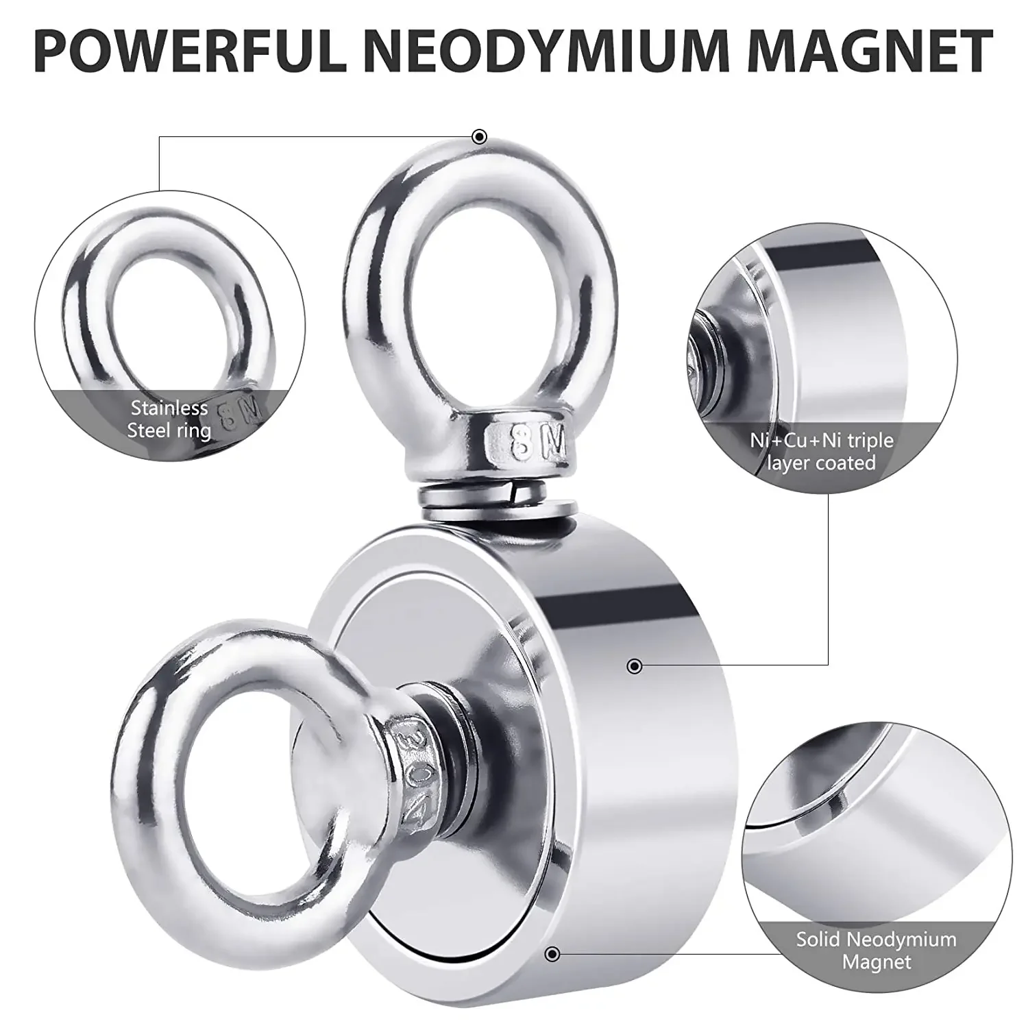 Strong Search Magnet Double Side Holes Neodymium Magnet Hook Super Power Salvage Fish …
