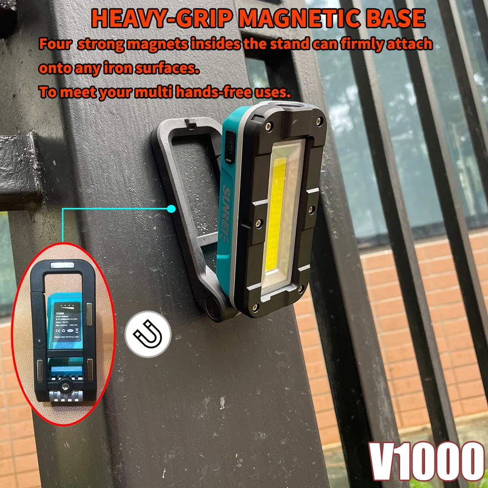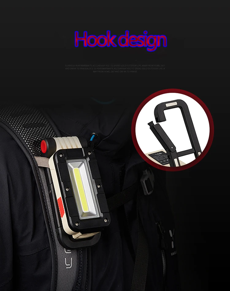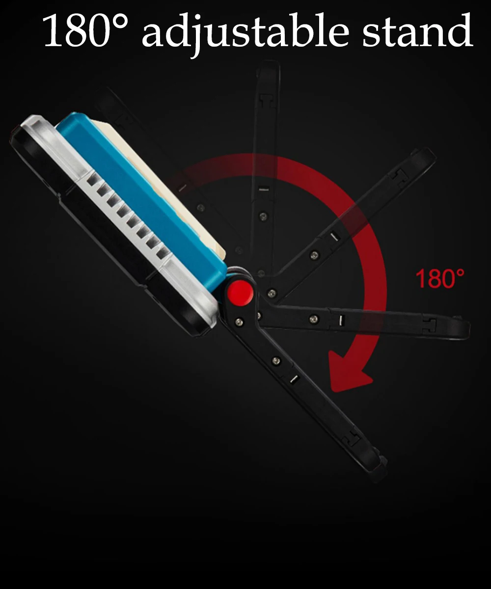 ✅【Hook & Magnetic Fixed Design】Magnetic function: portable led lighting with magnets, which can be attached to metal surfaces on many complex workplaces. Hook design: it allow the led light to be hung on objects such as tents that cannot be absorbed, which can completely release your hands, and the stable design makes you work more easily.The 180-degree rotating hook can provide multi-angle illumination and meet your different demands.