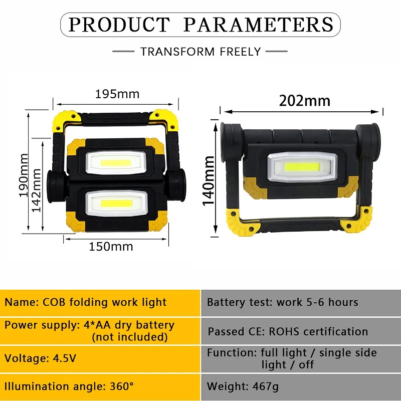 Super Bright 200W LED Work Light Foldable Work Light 500M Long Range Searchlight Wate …