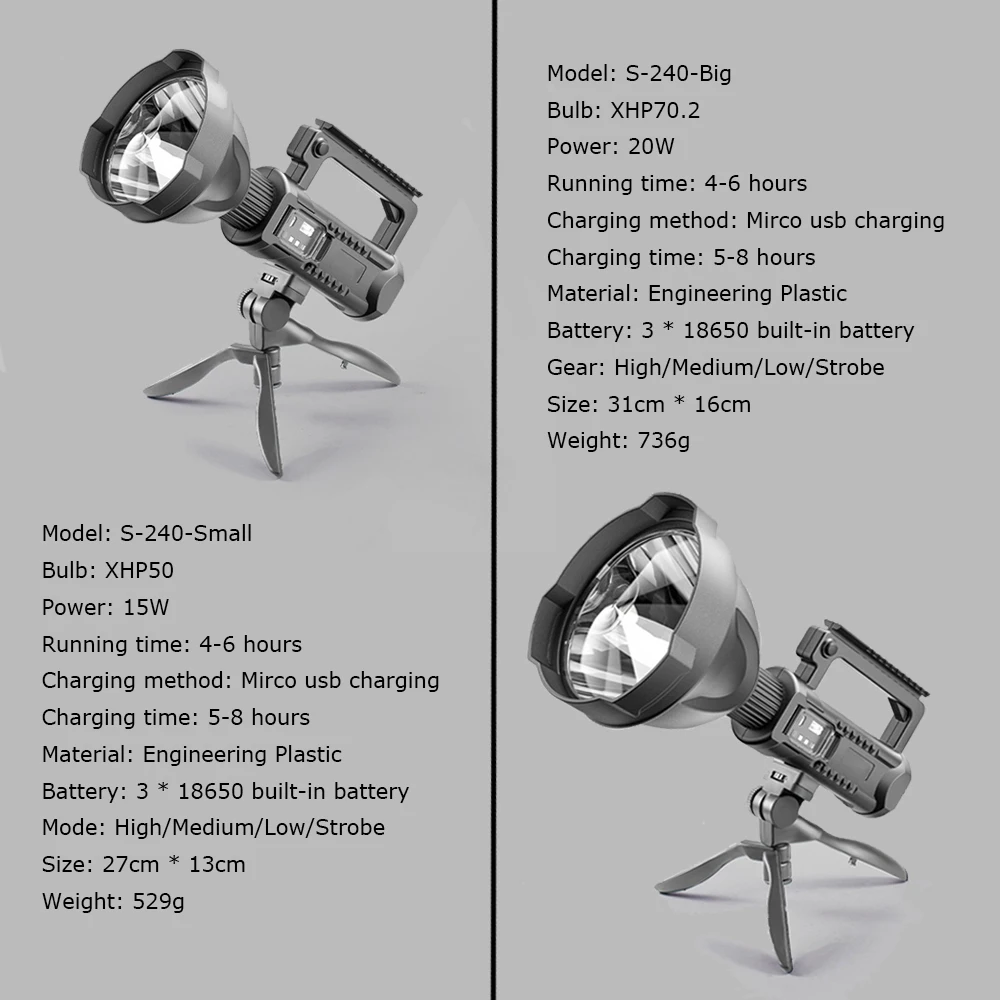 Super bright LED Portable Spotlights Flashlight searchlight With P70.2 Lamp Bead Moun …