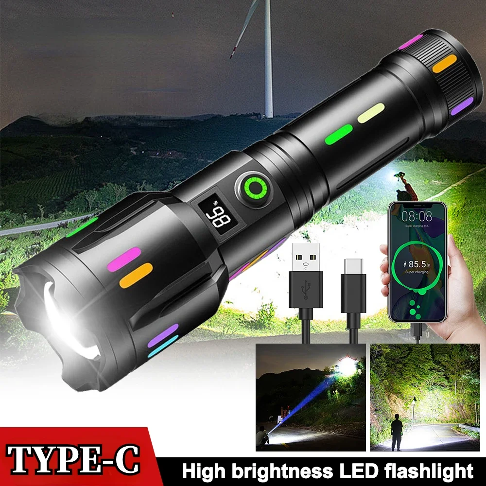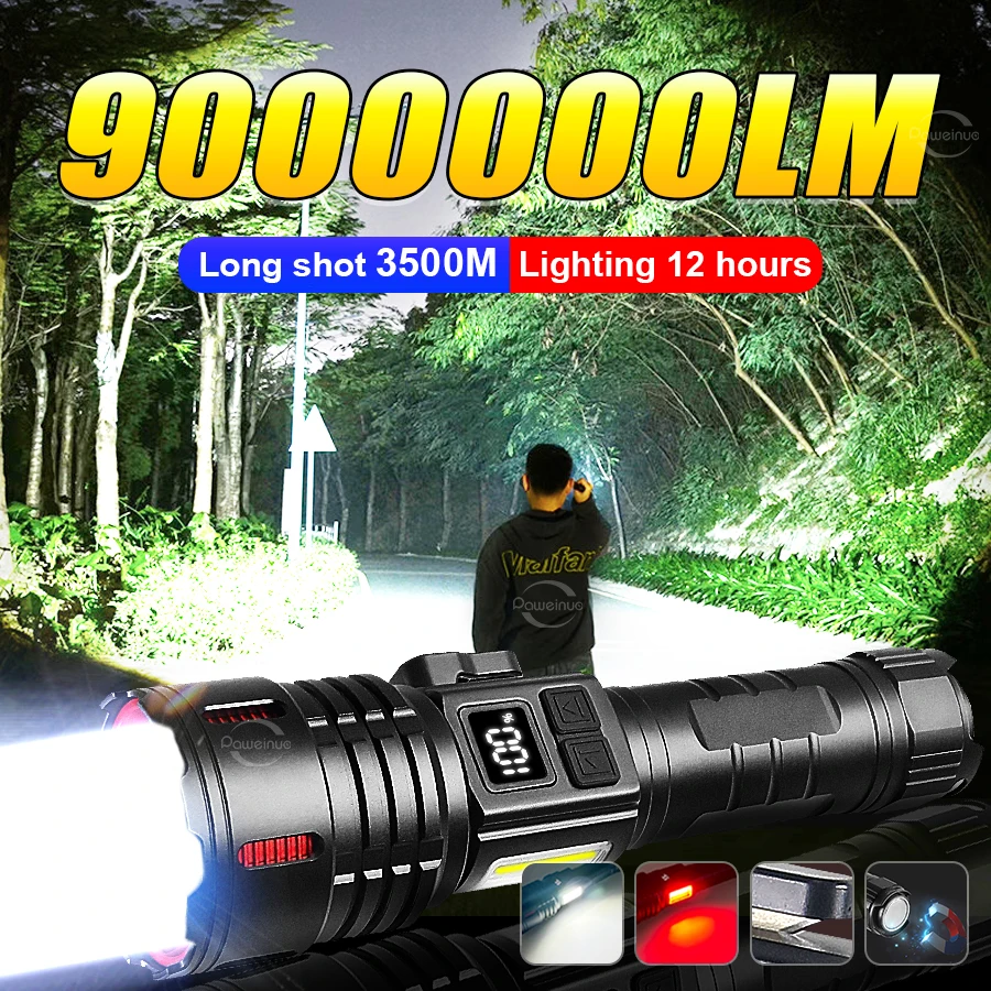 Super Bright Spotlight LED Flashlight with Luminous Strips 3000M Long-Range Search Zo …