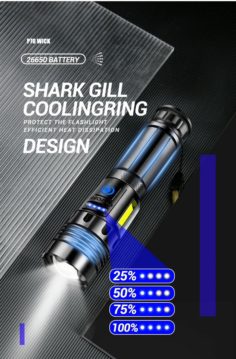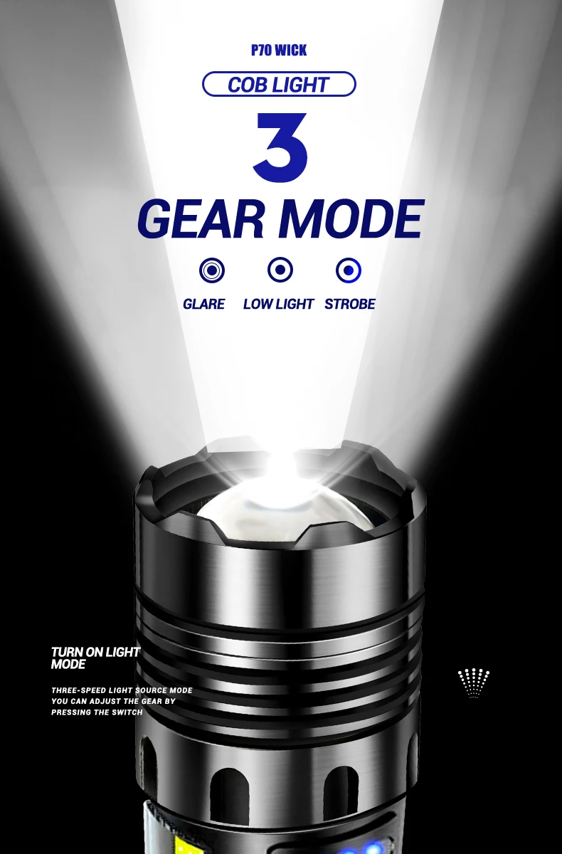 Super Bright XHP70 Powerful Led Flashlight Power Bank Torch Light USB Rechargeable Ca …