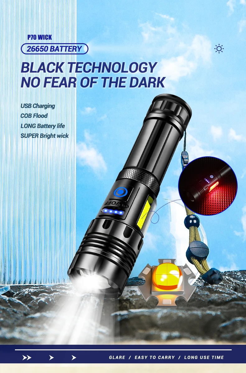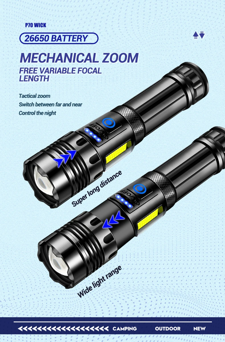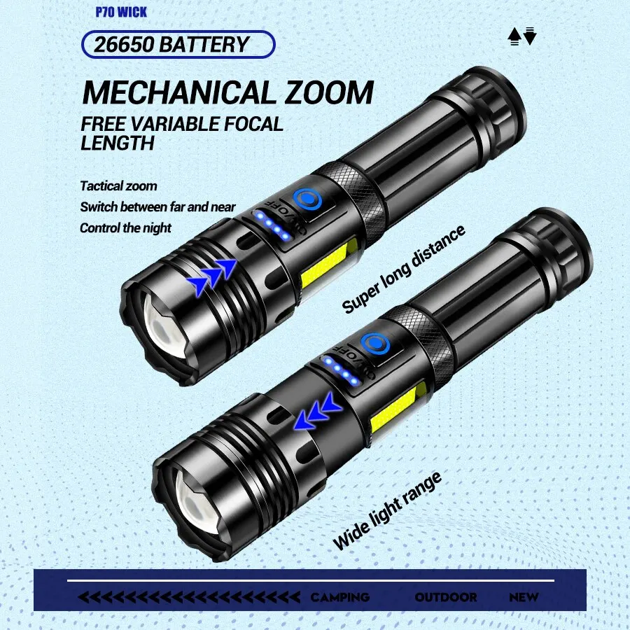 • COB Lamp :The COB (Chip on Board) lamp provides a wider and brighter beam, making it perfect for illuminating larger areas.