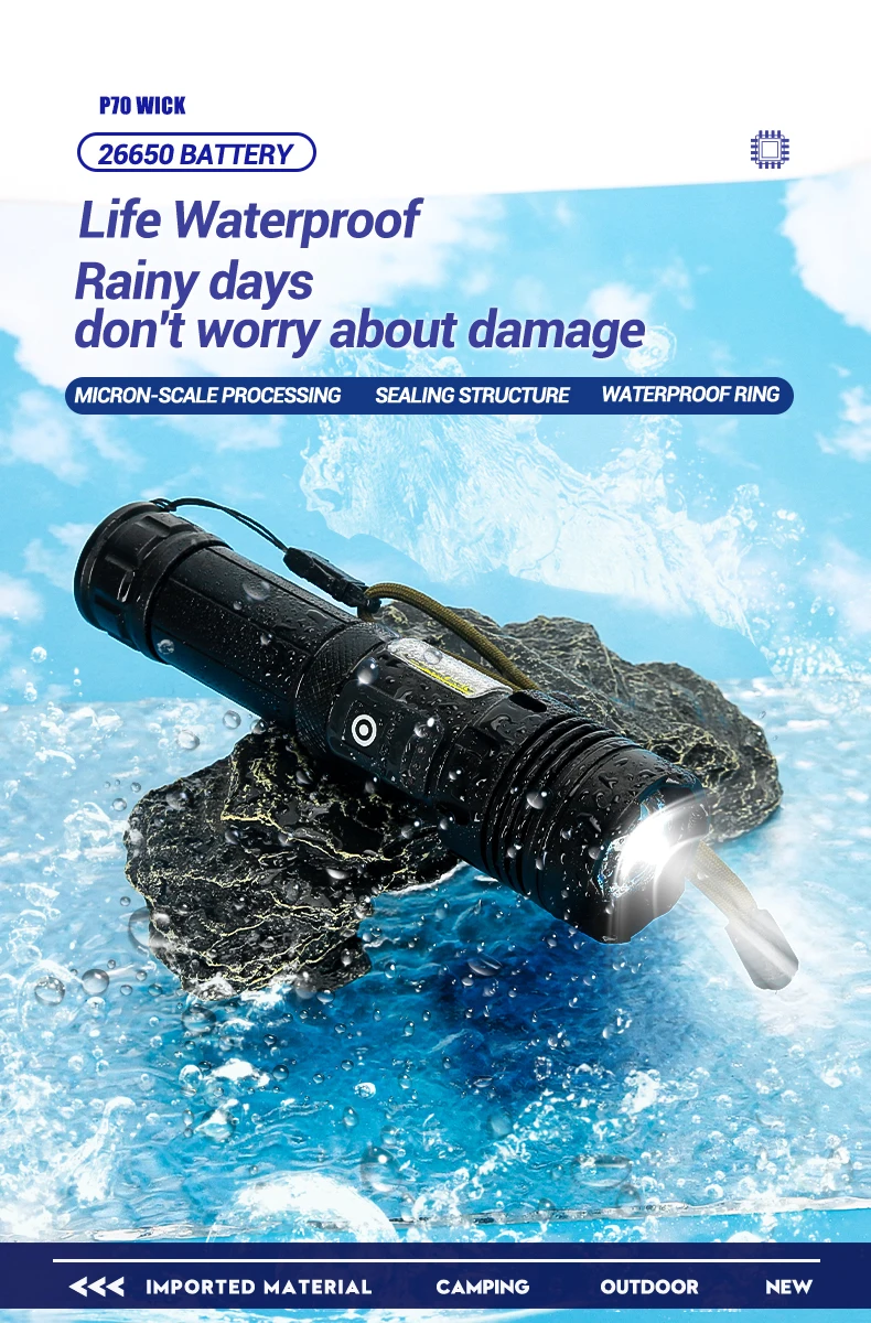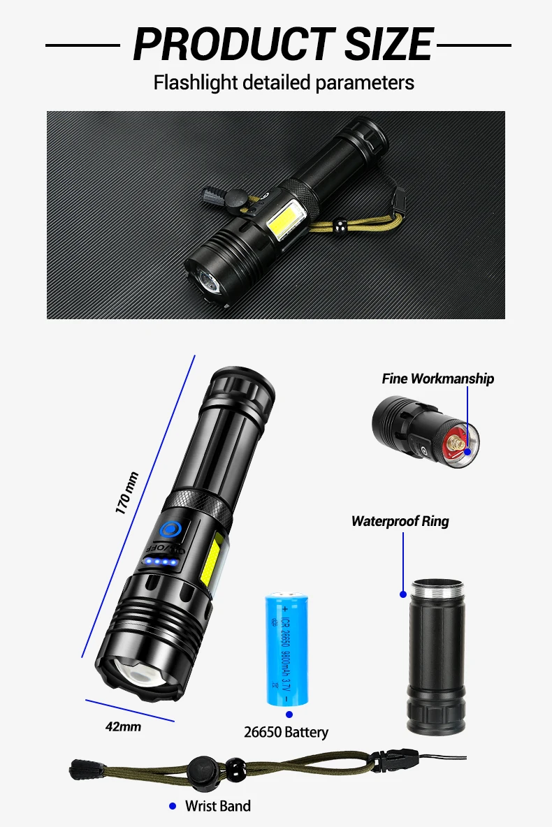 • Waterproof :This flashlight is designed to withstand harsh weather conditions, making it ideal for use in all seasons.