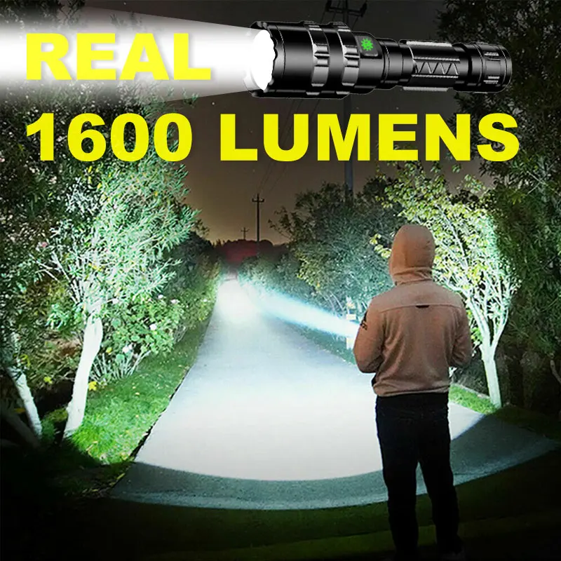 Tactical LED Flashlight White Light Outdoor Waterproof 1600Lumens Untra-bright Torch …