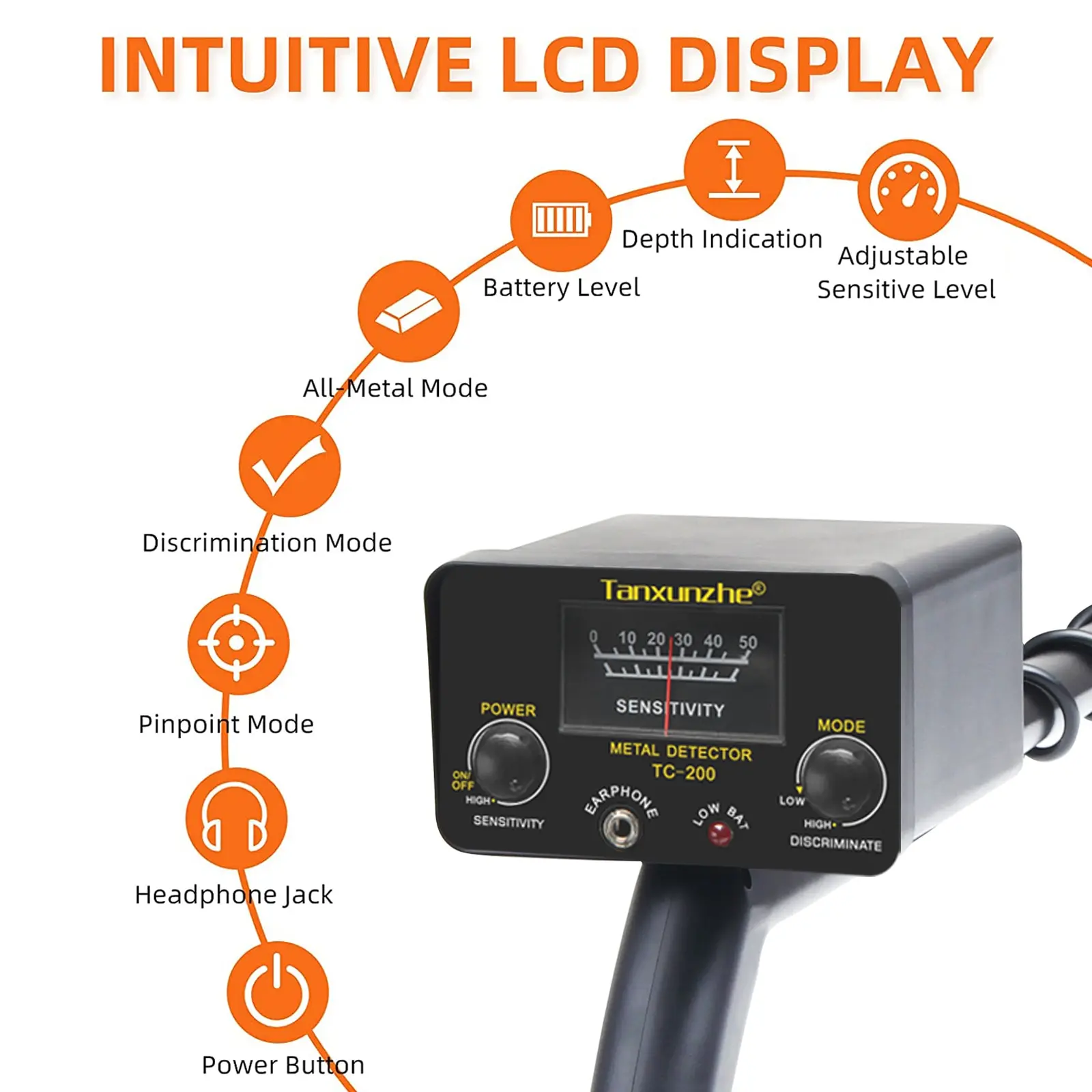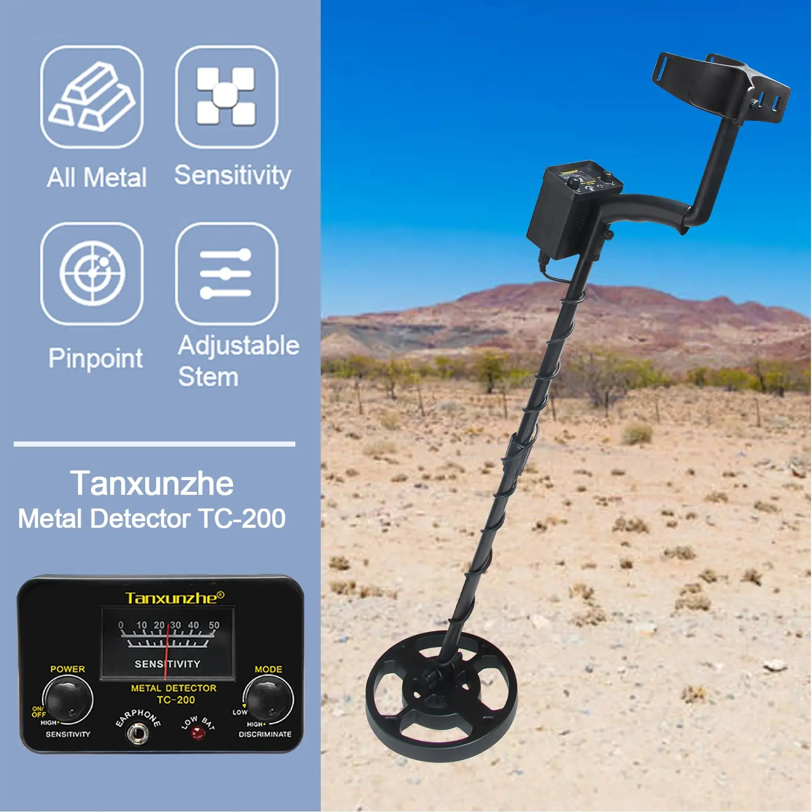• Battery-Powered :The TC-200 Upgrade Metal Detector is powered by batteries, making it easy to use and portable.
