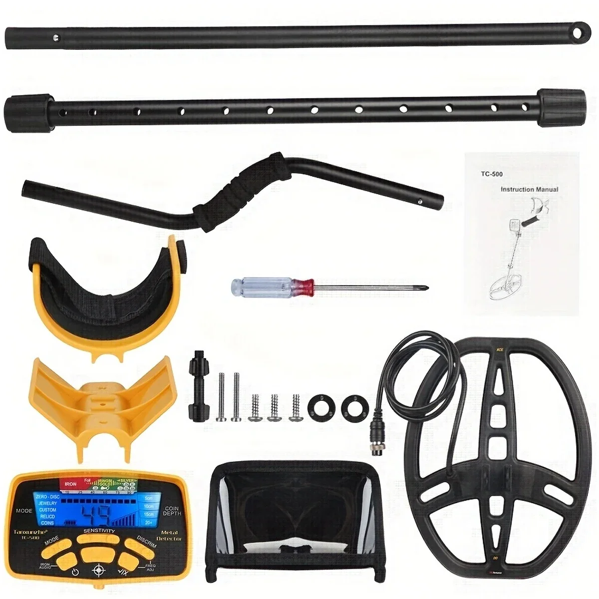Features:TC-500 high sensitivity design, looking for the smallest gold nugget, treasure hunting and coil shooting, looking forIt can be used in the backyard, coastline, mountains or undiscovered treasures in the distance, the detector can let you experience the excitement of treasure hunting.Smart sensor An underground metal detector is an electronic instrument that can detect the presence of nearby metals. Underground metal detectors can be used to find metal inclusions hidden in objects, or metal objects buried in the ground. They usually consist of sensor probes that can sweep across the ground. Usually the device will give some indication of distance