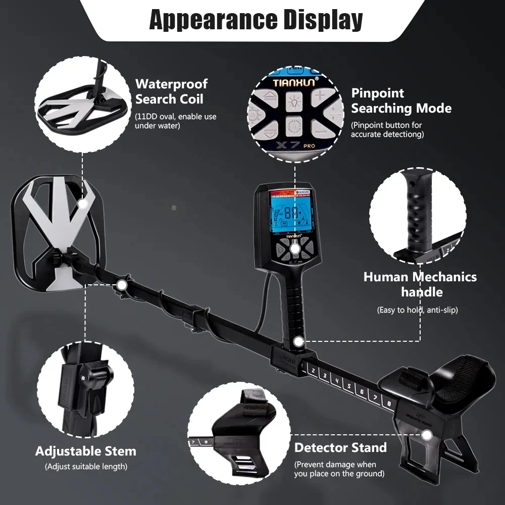 Tianxun New X7 Pro Underground Metal Detector Waterproof Search Coil High Sensitivity Gold Finder Treasure Hunter Equipment