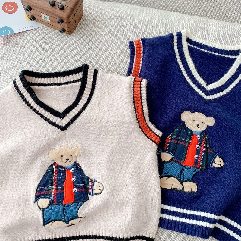 Toddler Kids Boy Knitting Vest 0-5Years Children Sleeveless Vest Bear Pattern Knitted …