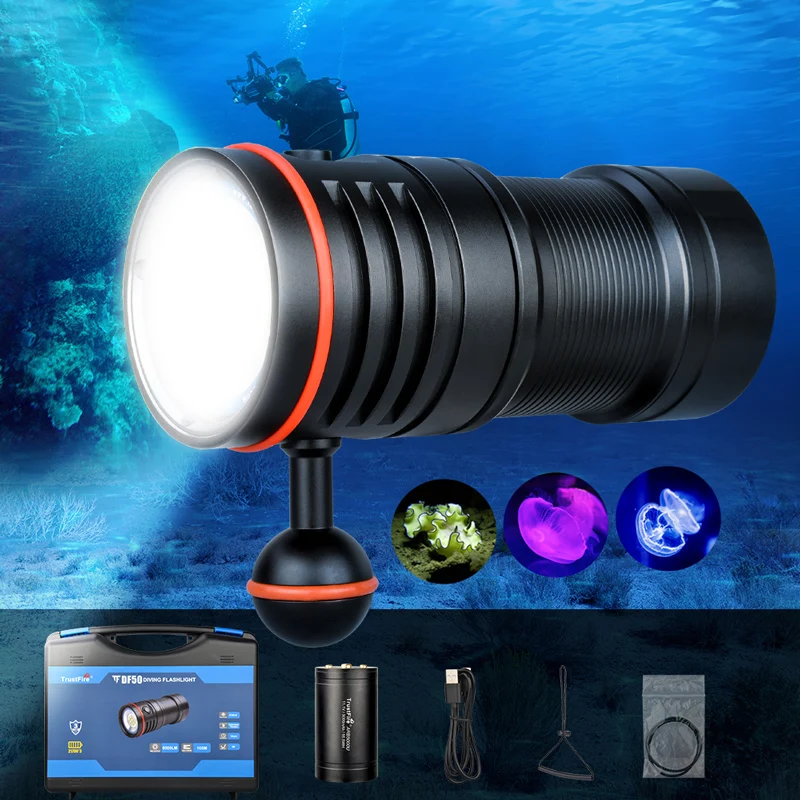 1.TrustFire DF50 Max 6500 Lumens Video Diving Photoraphy Lights Underwater 100m Dive Lighting Flashlight High Bright Diving Torch